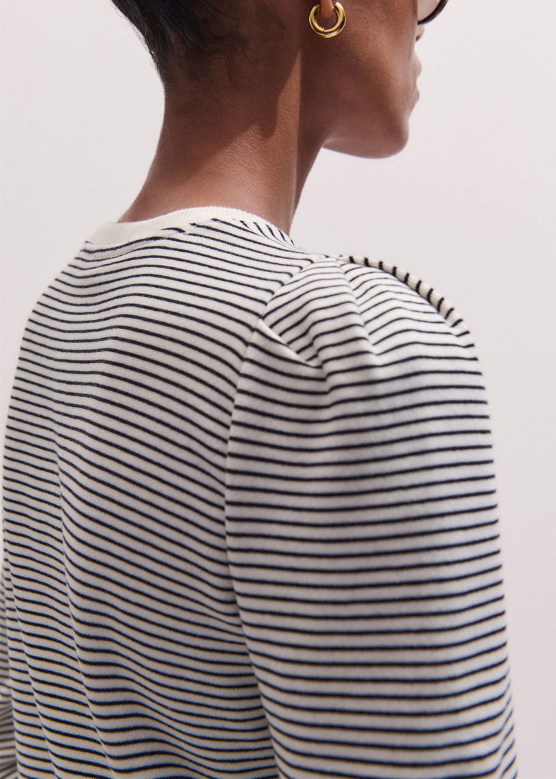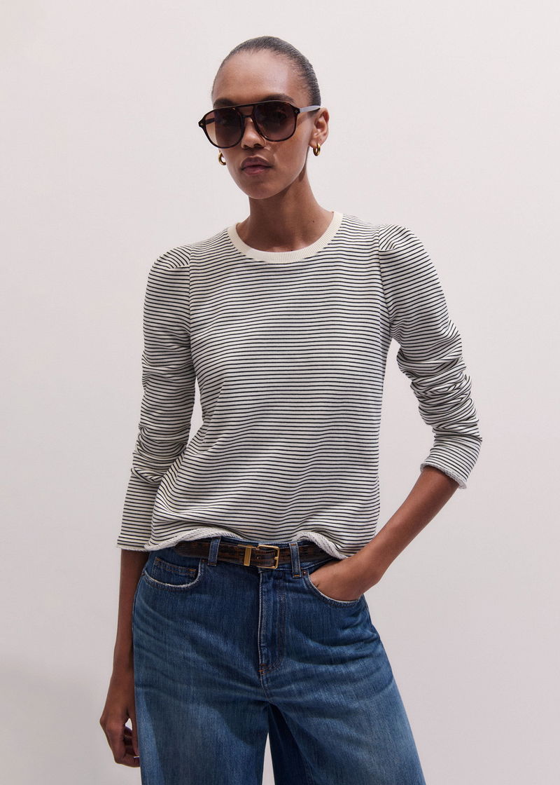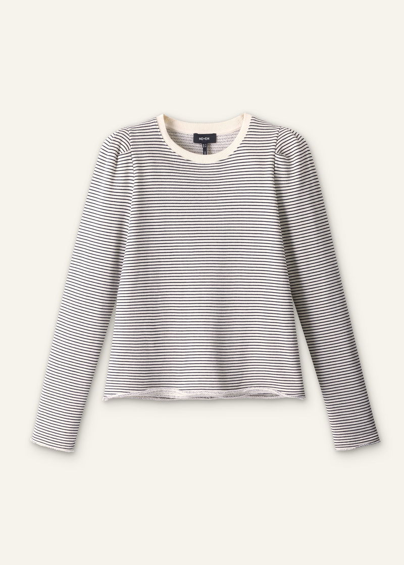 Stripe Pouf Sleeve Sweatshirt Navy/Light Cream