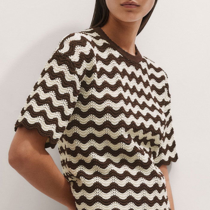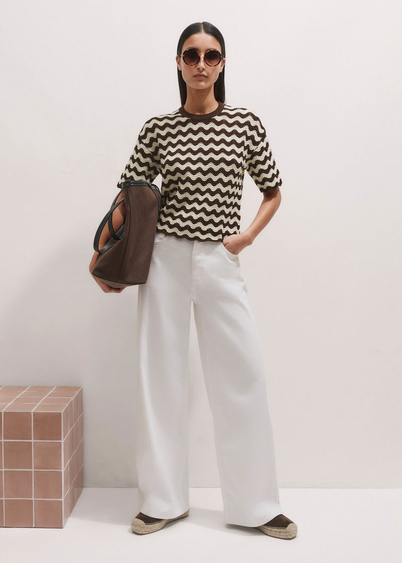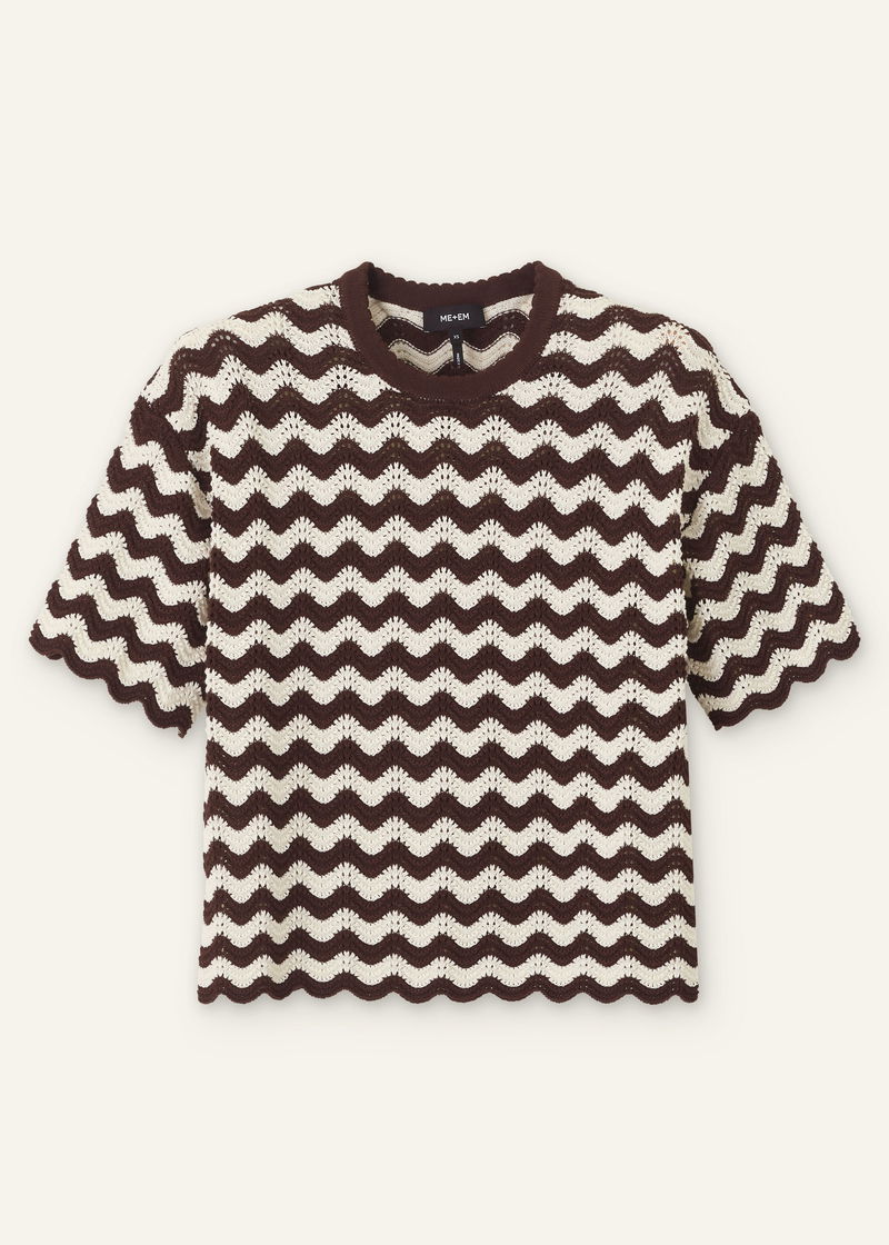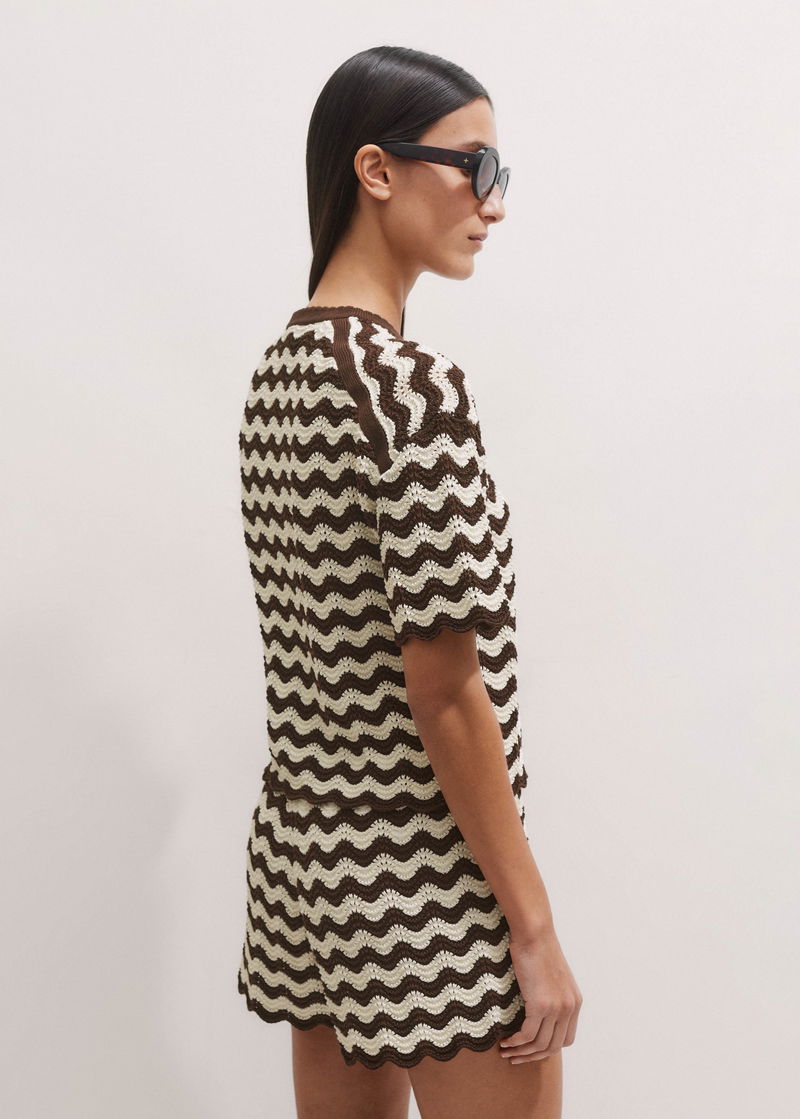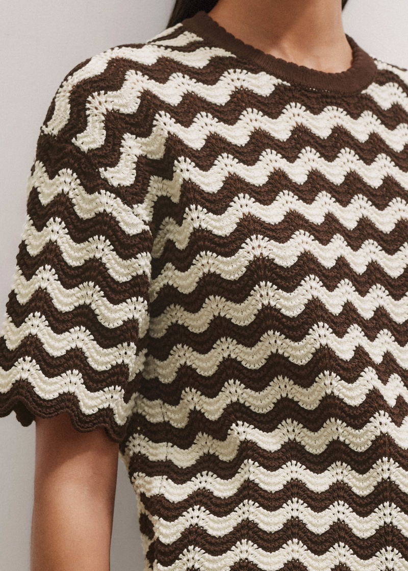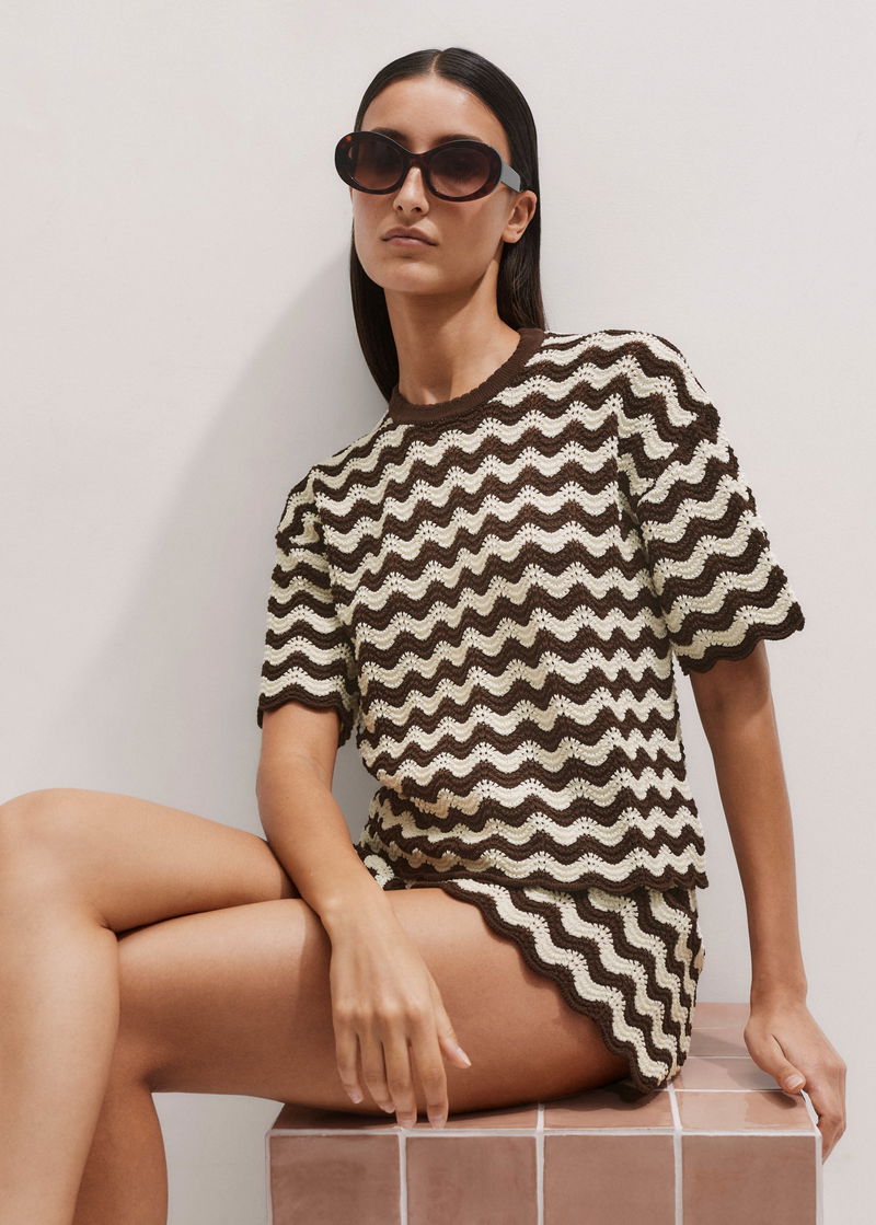 Stripe Scallop Knit Relaxed Tee Cream/Summer Chocolate