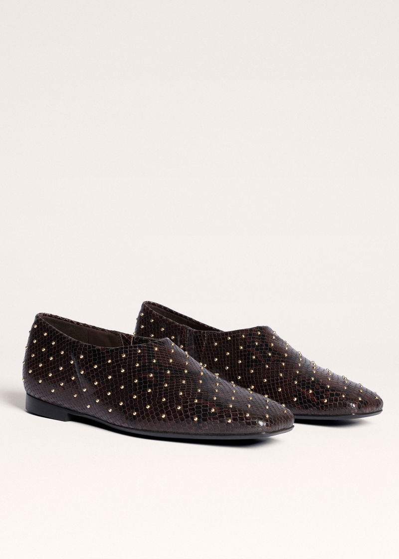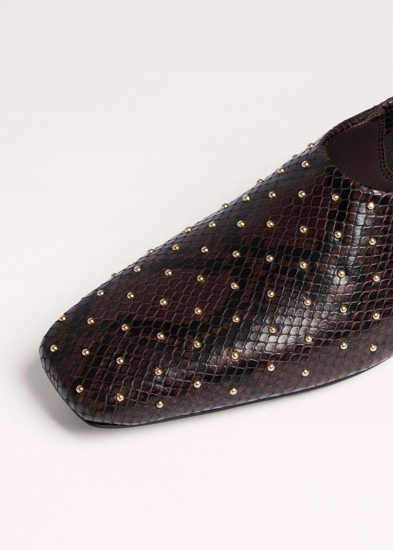 Studded Slim Square Slipper Tan/Black/Gold