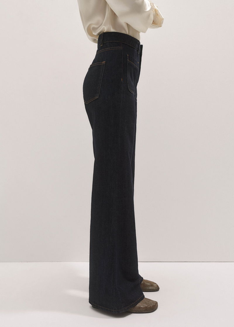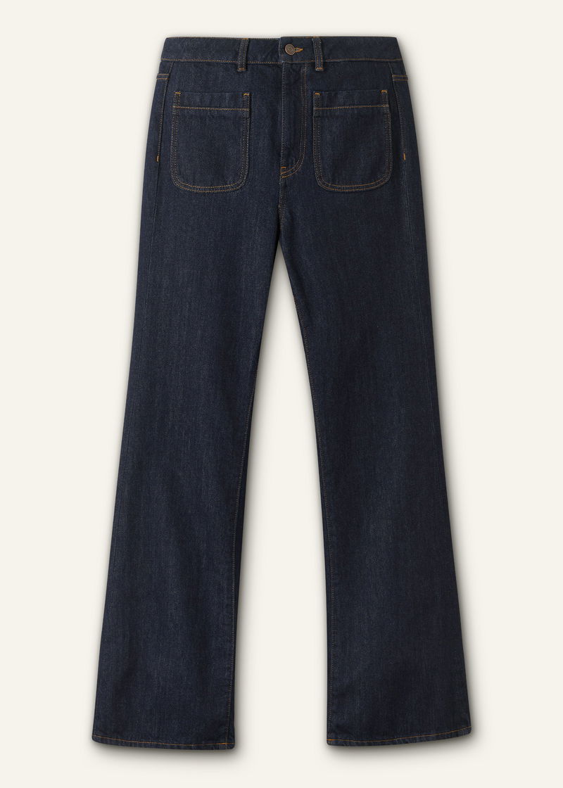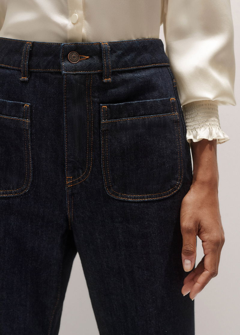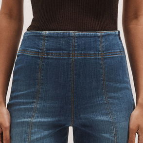 ME+EM's Blue Subtle Flare Jean is cleverly crafted to achieve a leg-lengthening effect.
