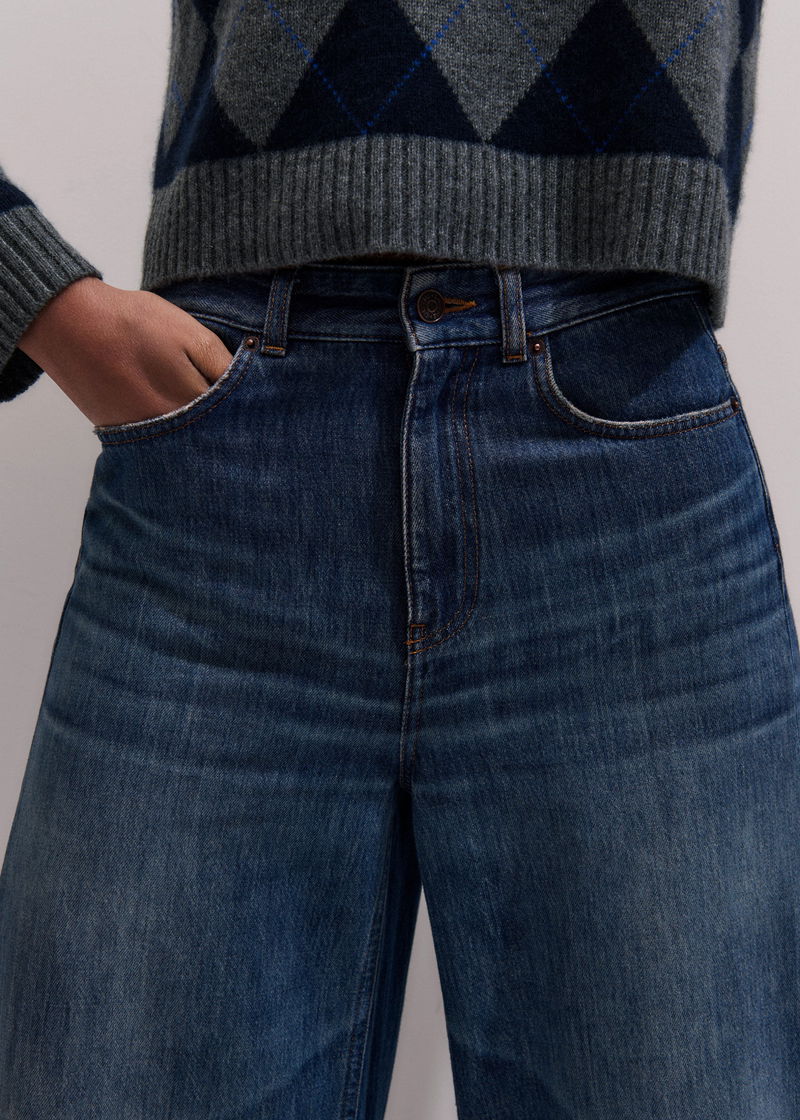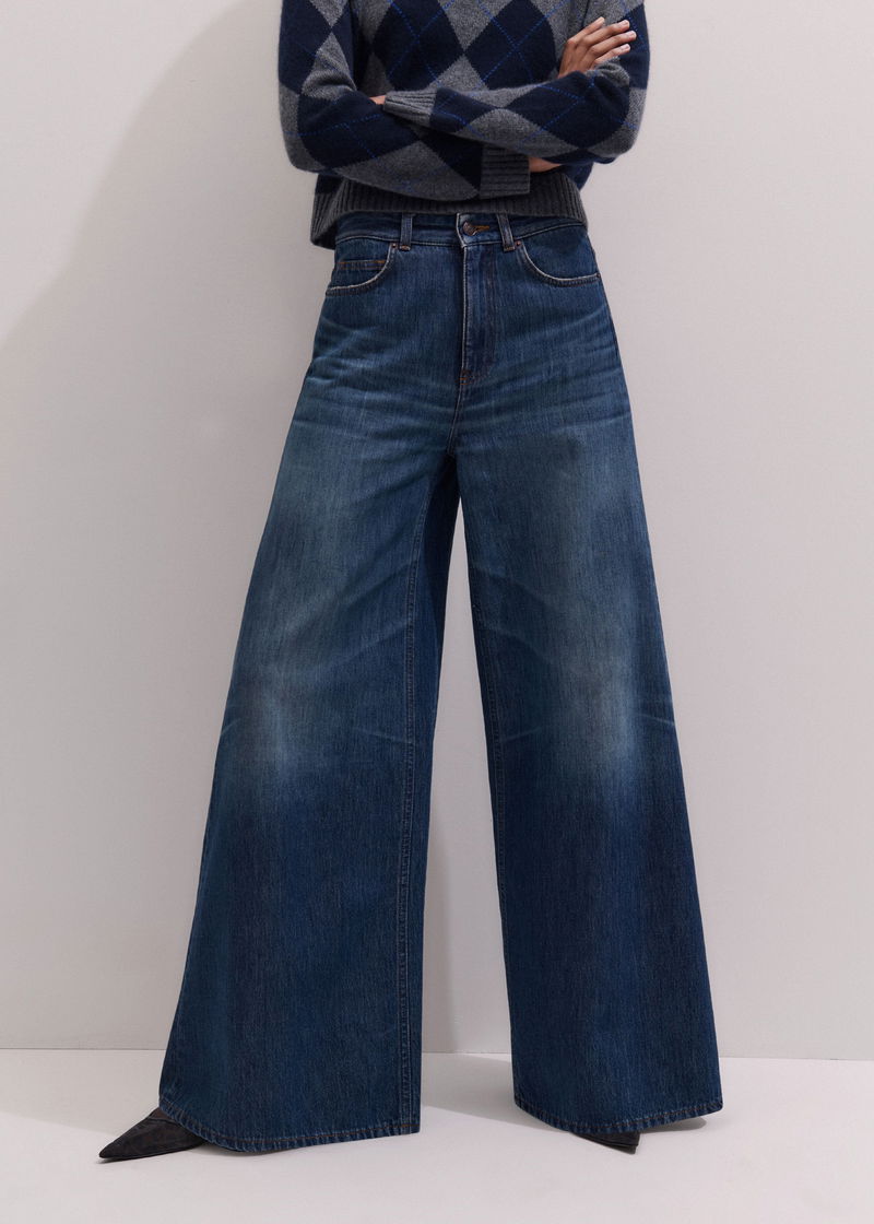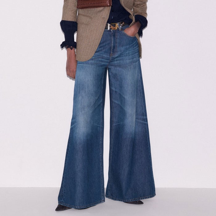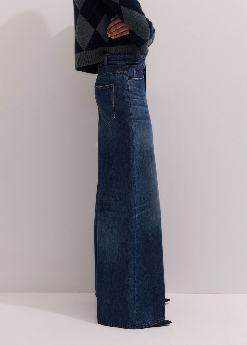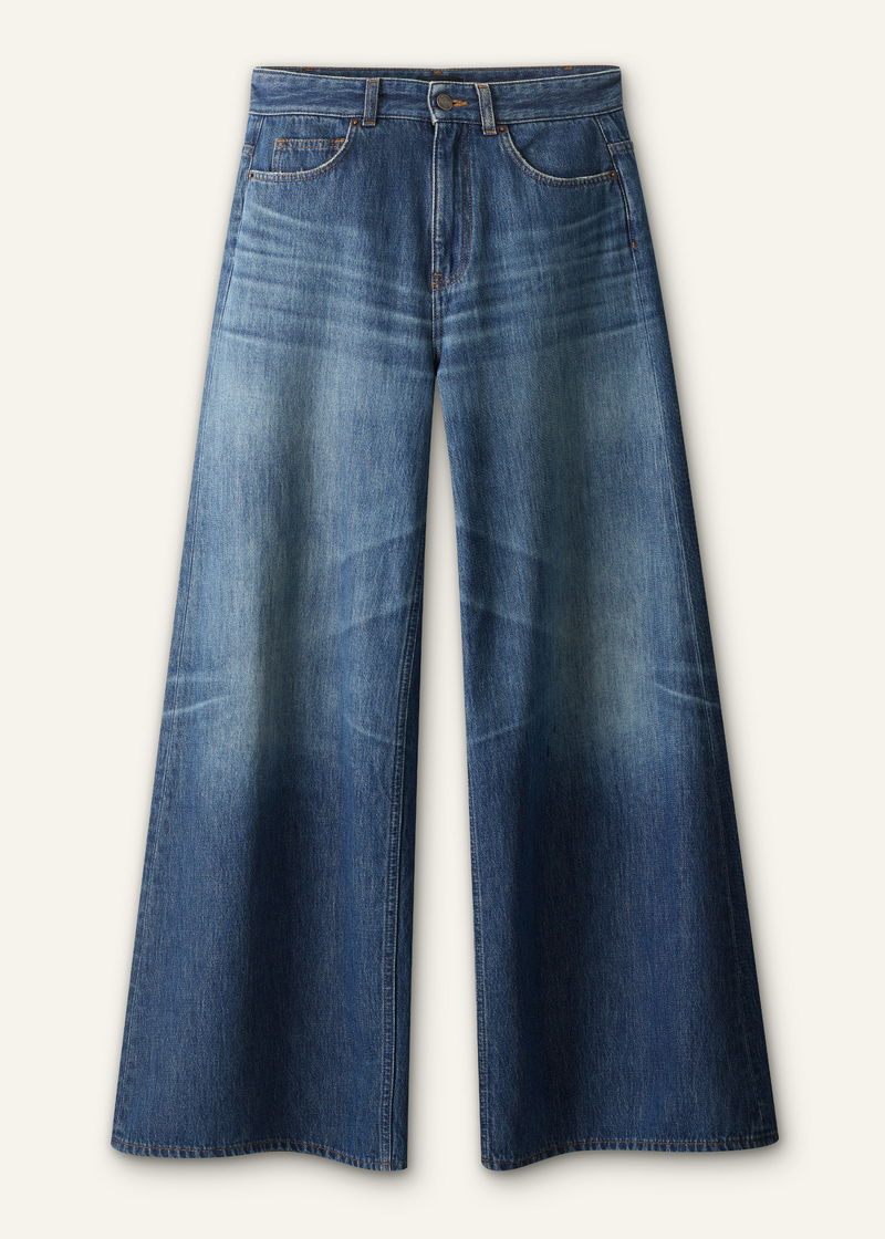 ME+EM's Mid Blue Super Wide Baggy Jean is shaped to a super wide-leg silhouette for a statement look.