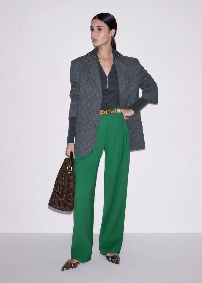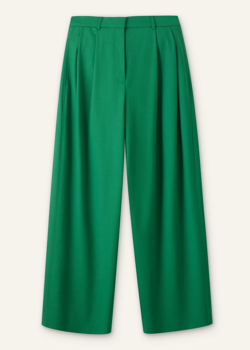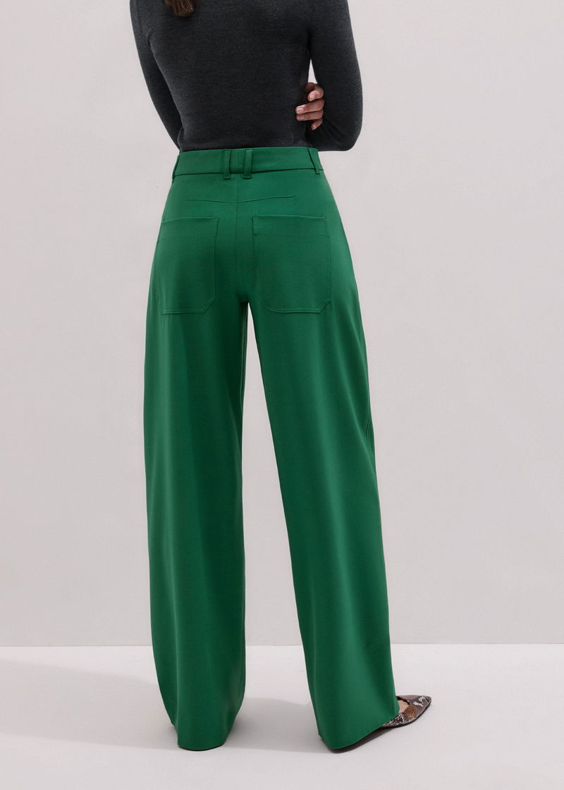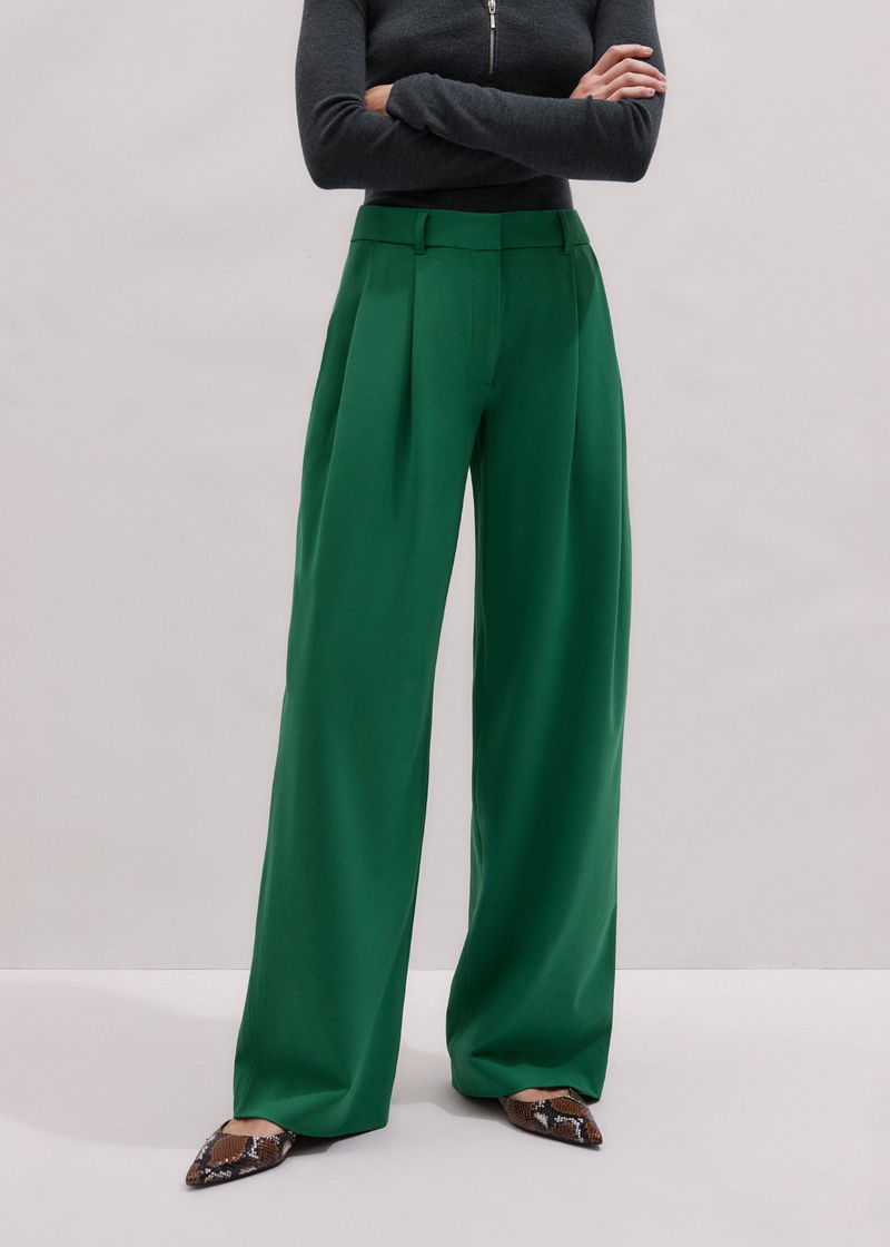 ME+EM's Green Tailored Exaggerated Tapered Trouser is available in both a short and regular length to accommodate different heights.