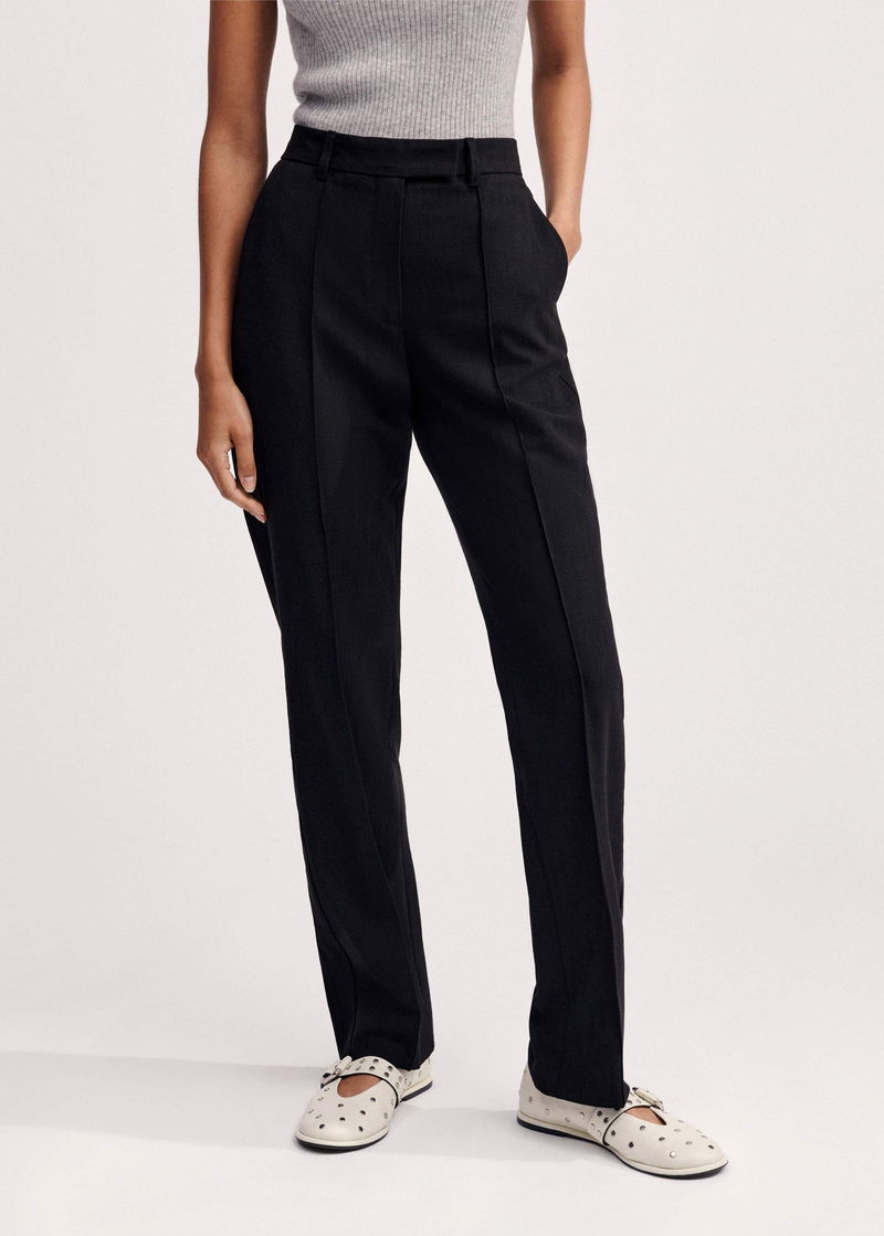 Structured yet soft, ME+EM's Black Textured Boyish Cigarette Pant is crafted from textured tailoring with added stretch for comfort, introducing effortless polish to your workwear lexicon.