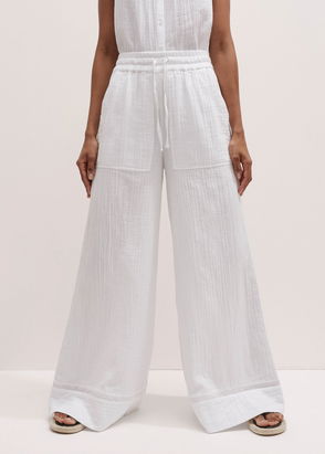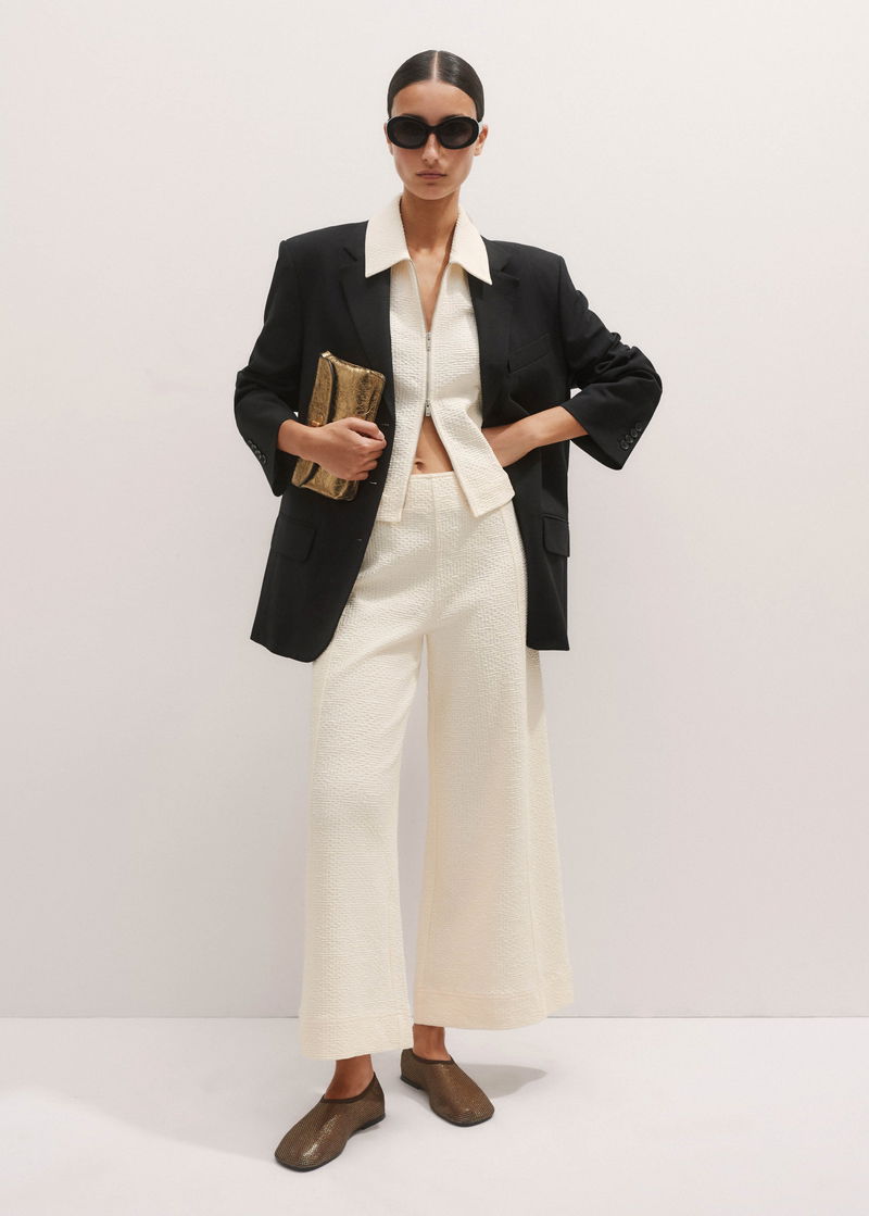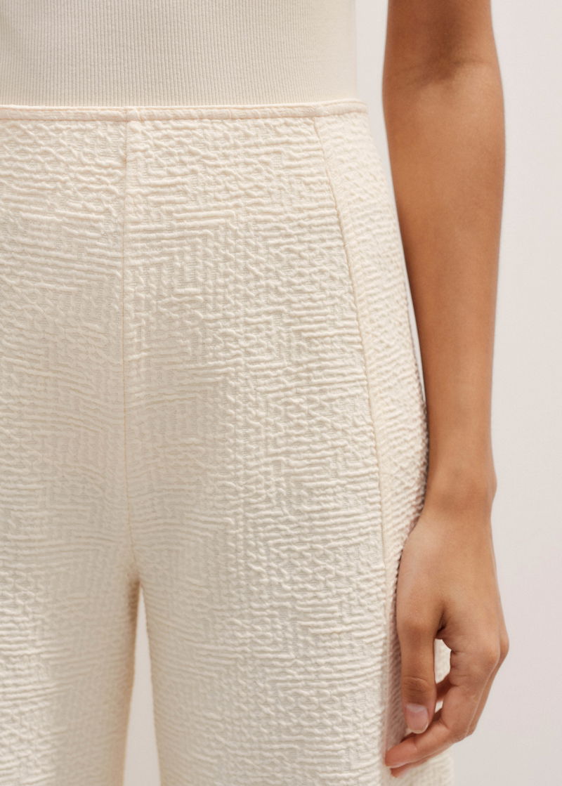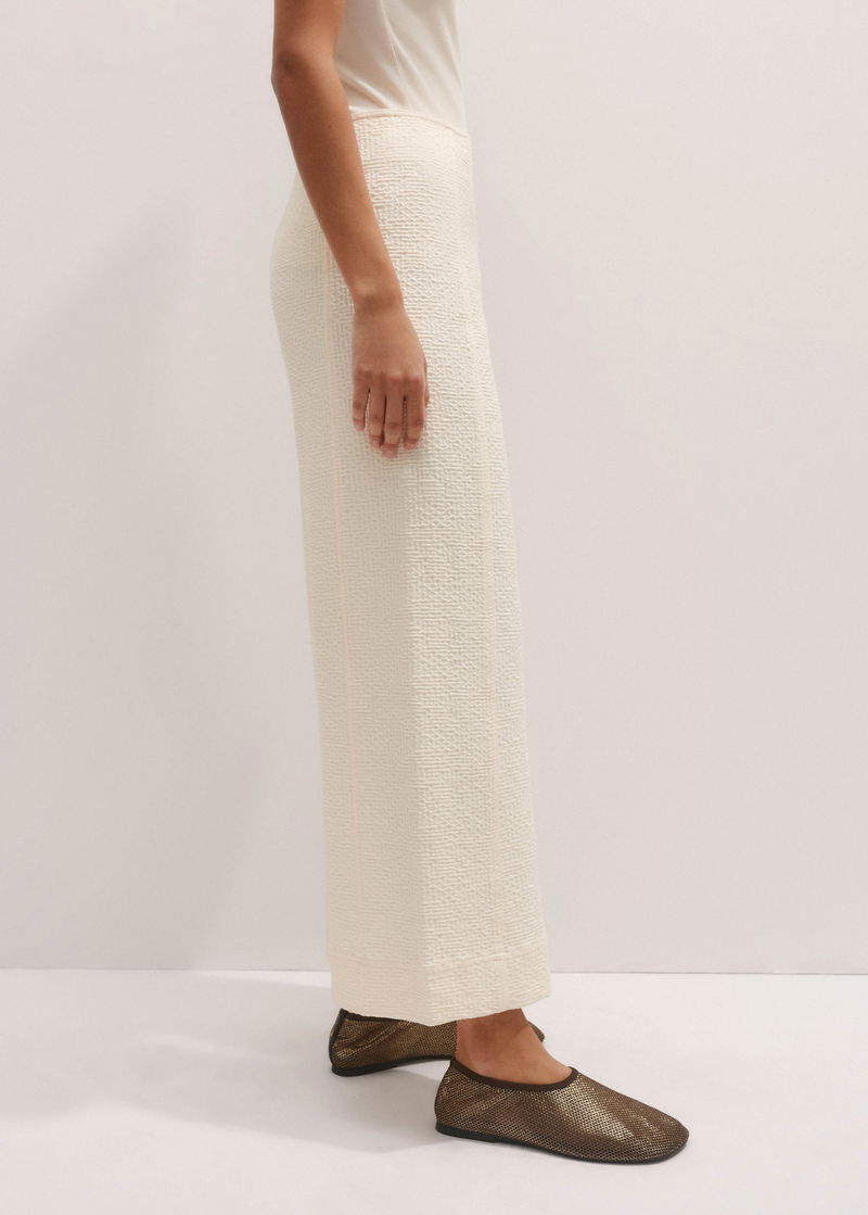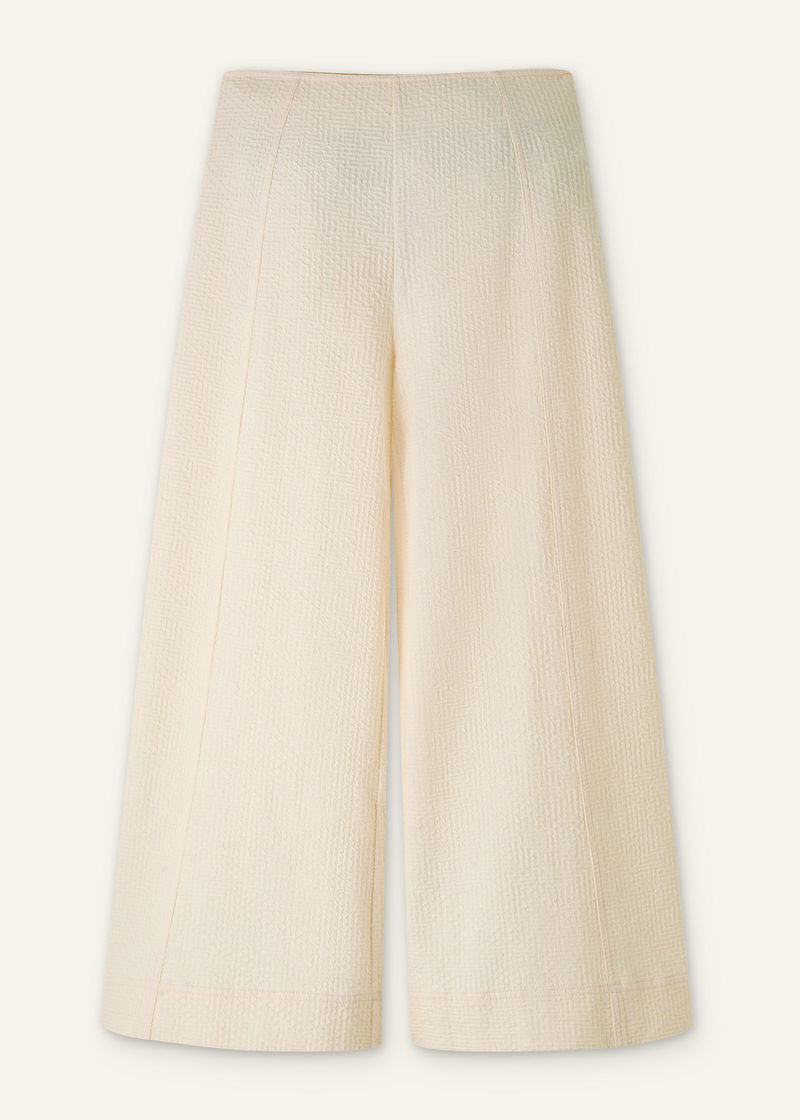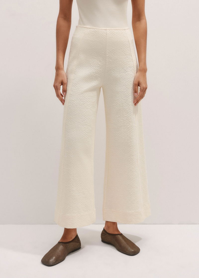 ME+EM's Cream Textured Ponte Crop Wide-Leg Trouser is designed without pockets or a front fastening to achieve a fluid, seamless shape.