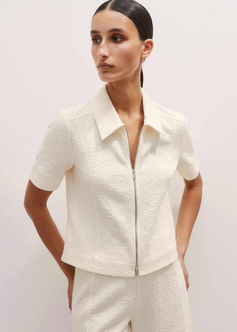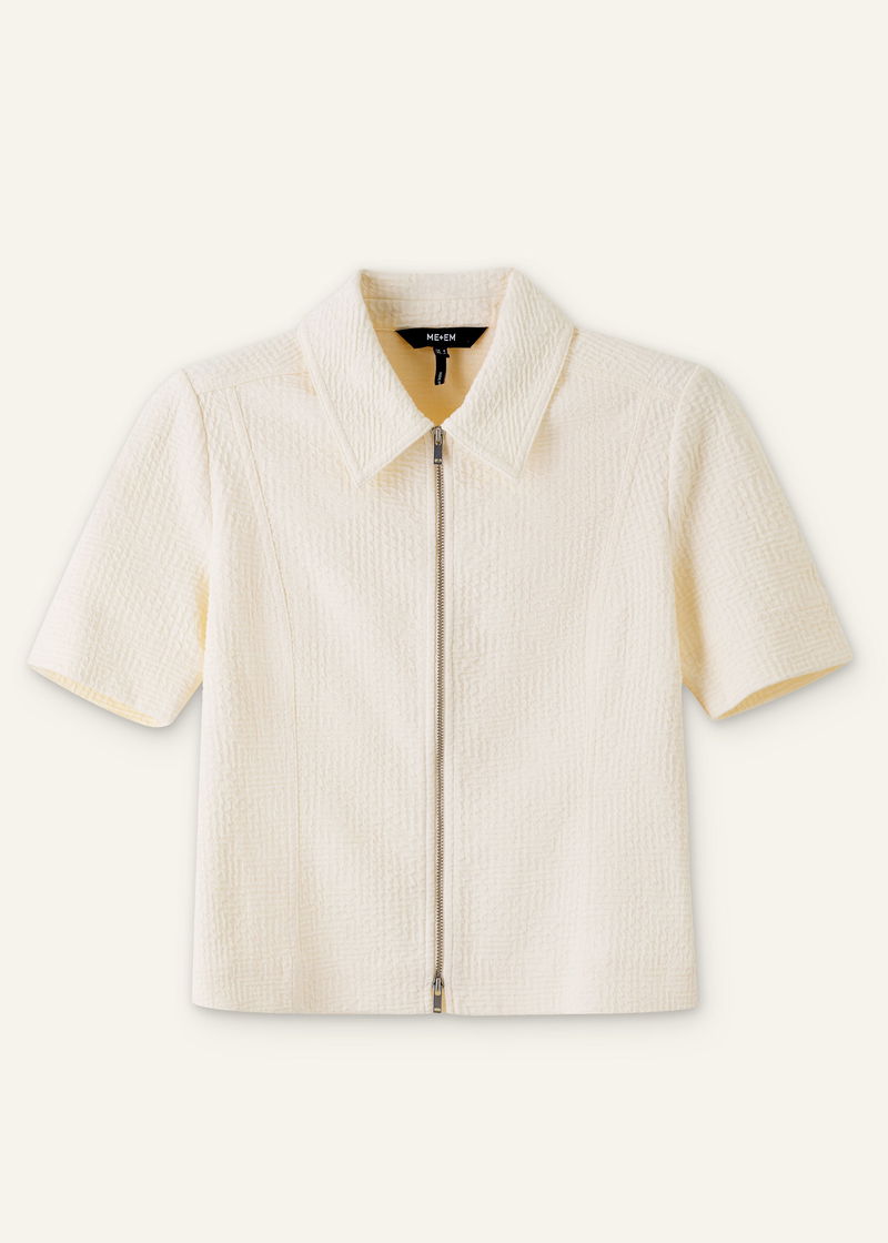 Textured Ponte Zip Front Top Cream