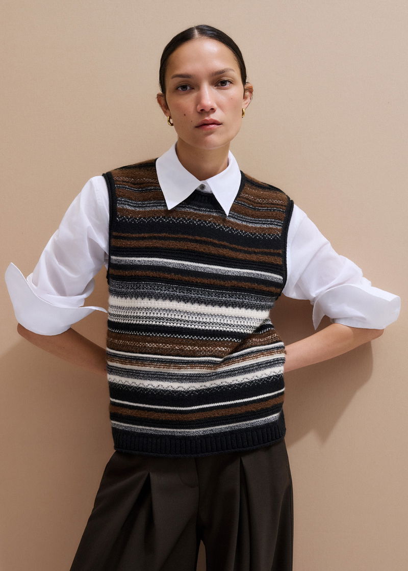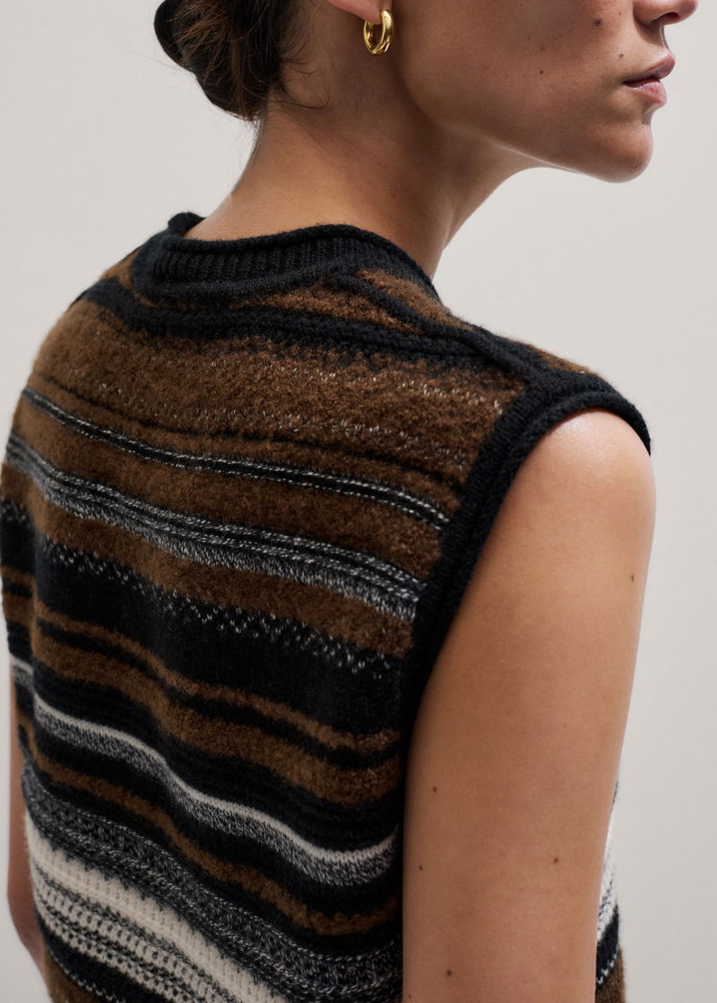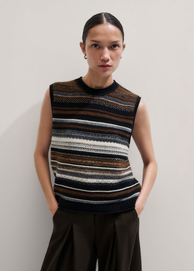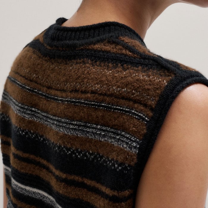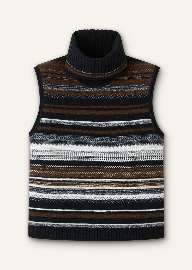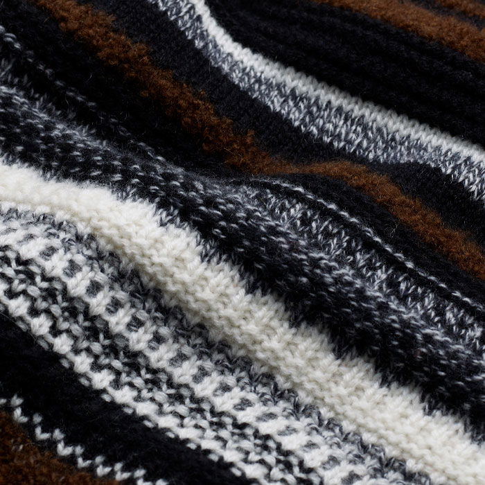Textured Stitch Straight Knit Vest + Snood Black Multi