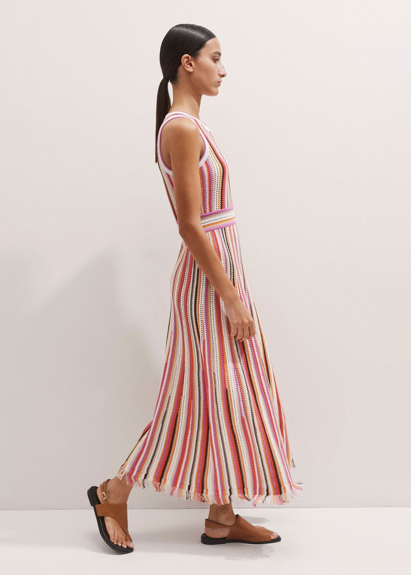 Textured Stripe Halterneck Knit Maxi Dress Electric Lilac Multi