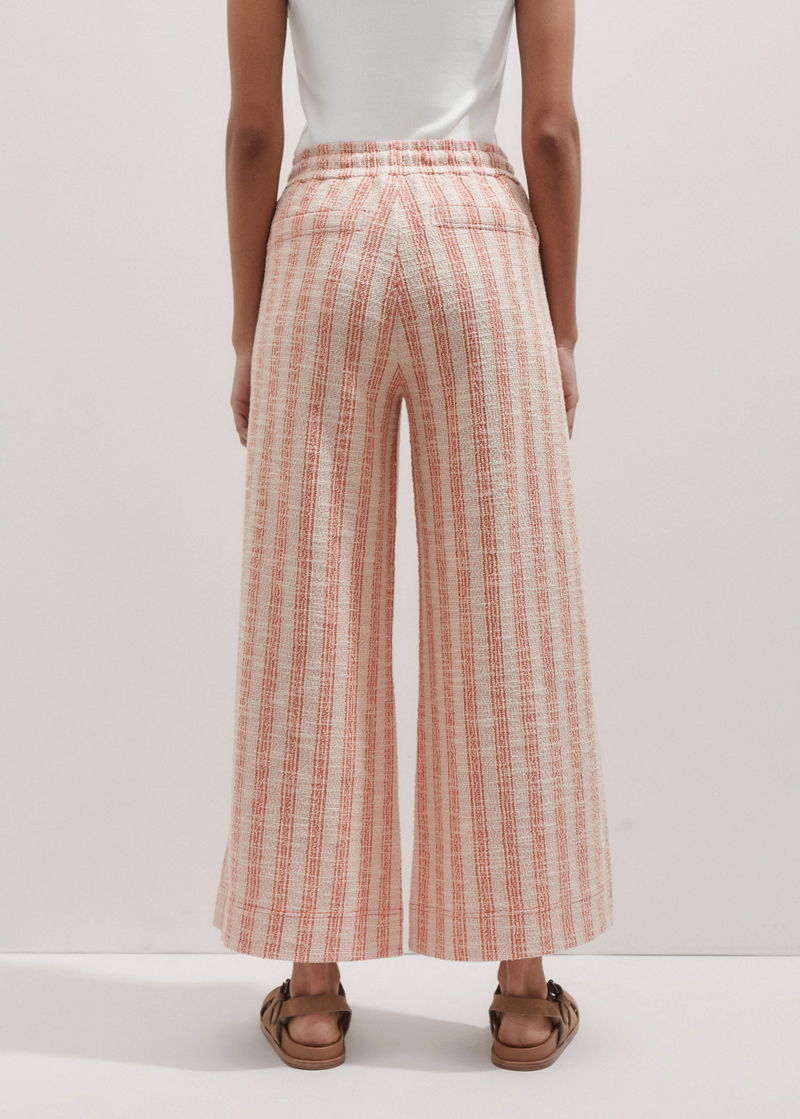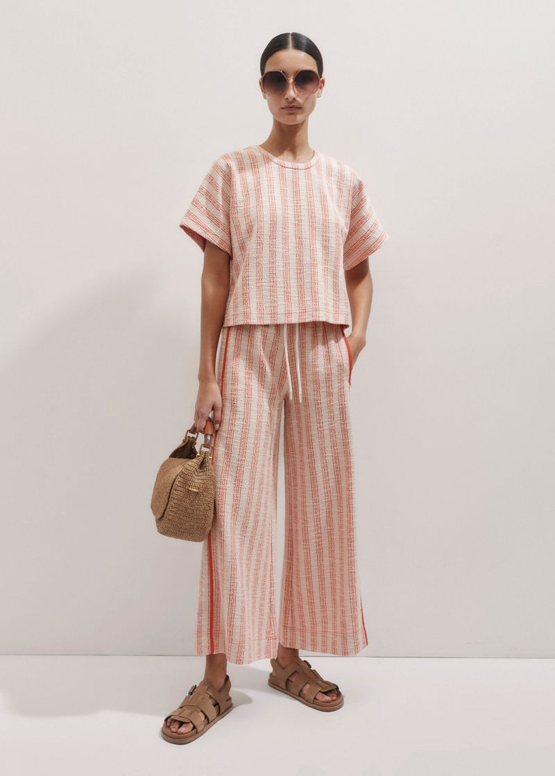 ME+EM's Orange Textured Stripe Wide-Leg Crop Trouser is made from a comfortable cotton-blend jersey with a cross-hatch pattern for a textured finish. extured Stripe Wide-Leg Crop Trouser Bright Papaya/Cream