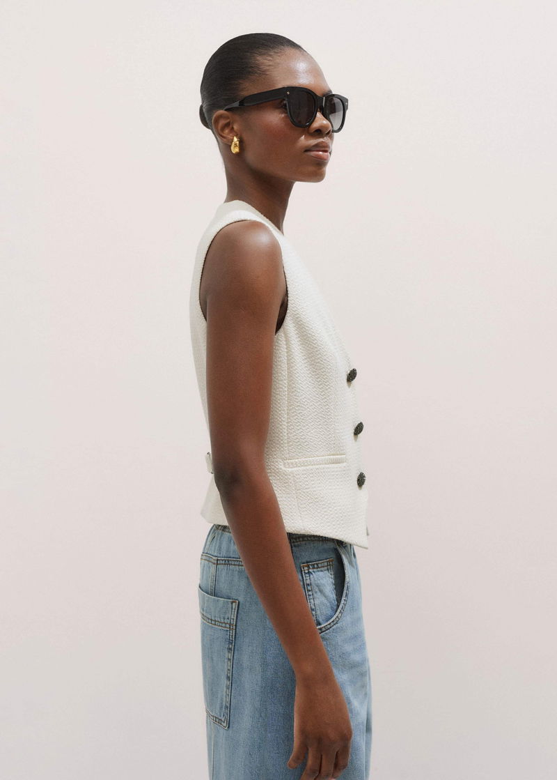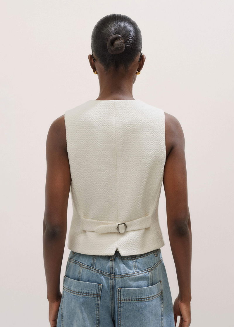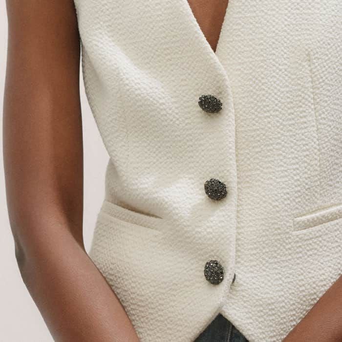 ME+EM's Ivory Textured Tailored Tux Vest is elevated with crystal-embellished press studs down the centre front and an adjustable tab to tailor the fit.