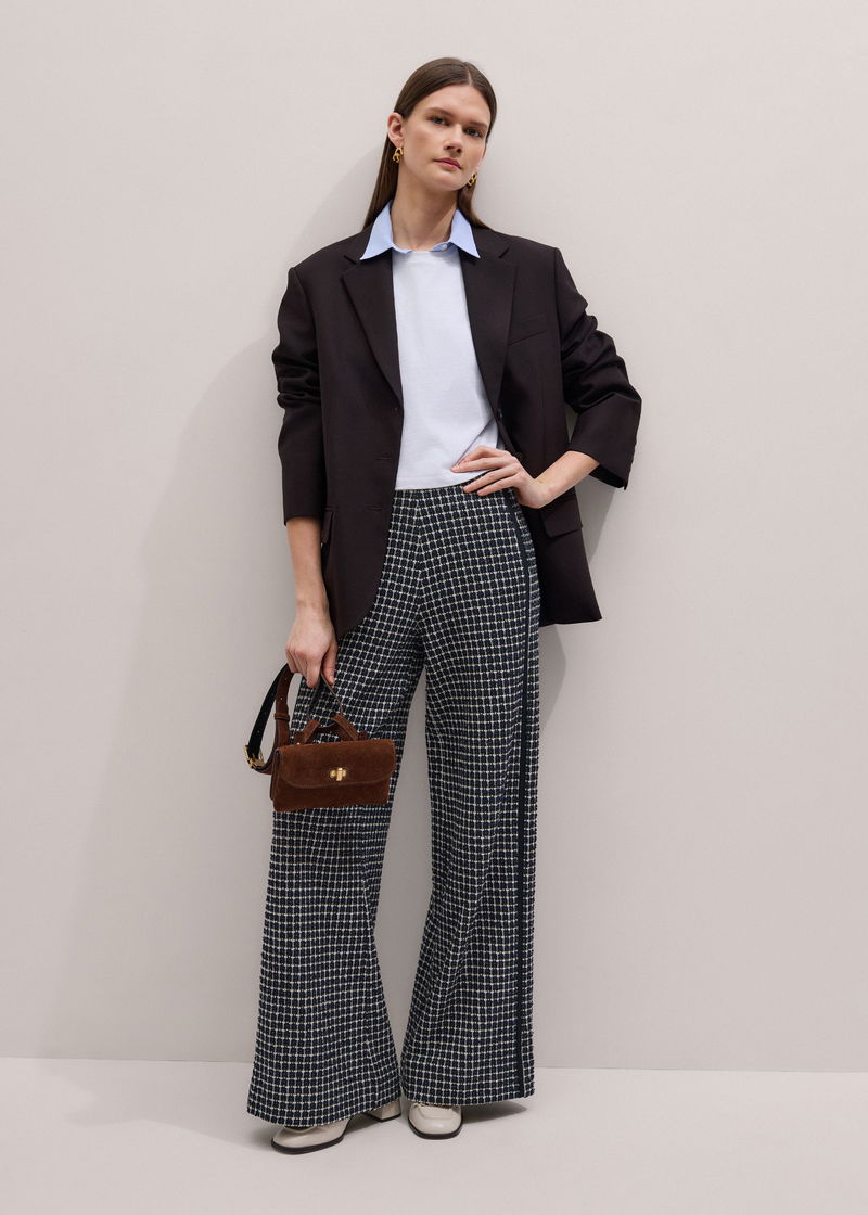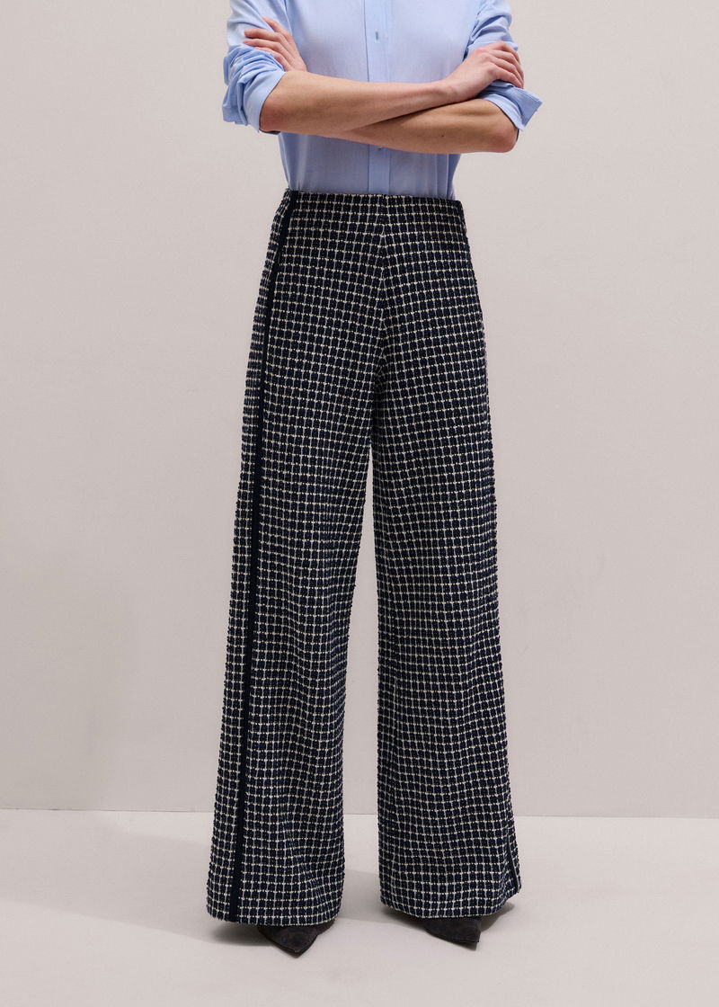 ME+EM's Navy Textured Wide-Leg Trouser is crafted from textured tweed and has a smooth fit at the hips, before extending to a fluid cut through the legs.