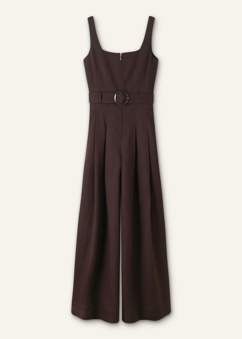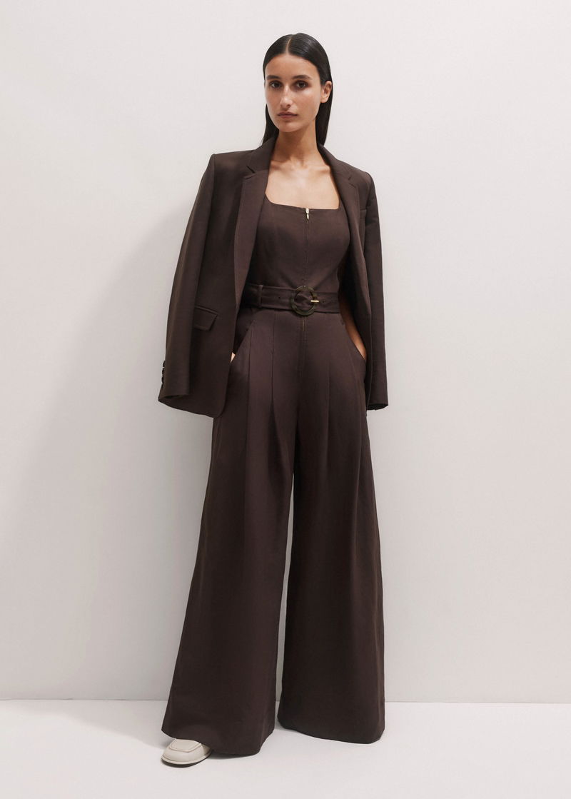The Event Ready Linen Blend Jumpsuit Summer Chocolate