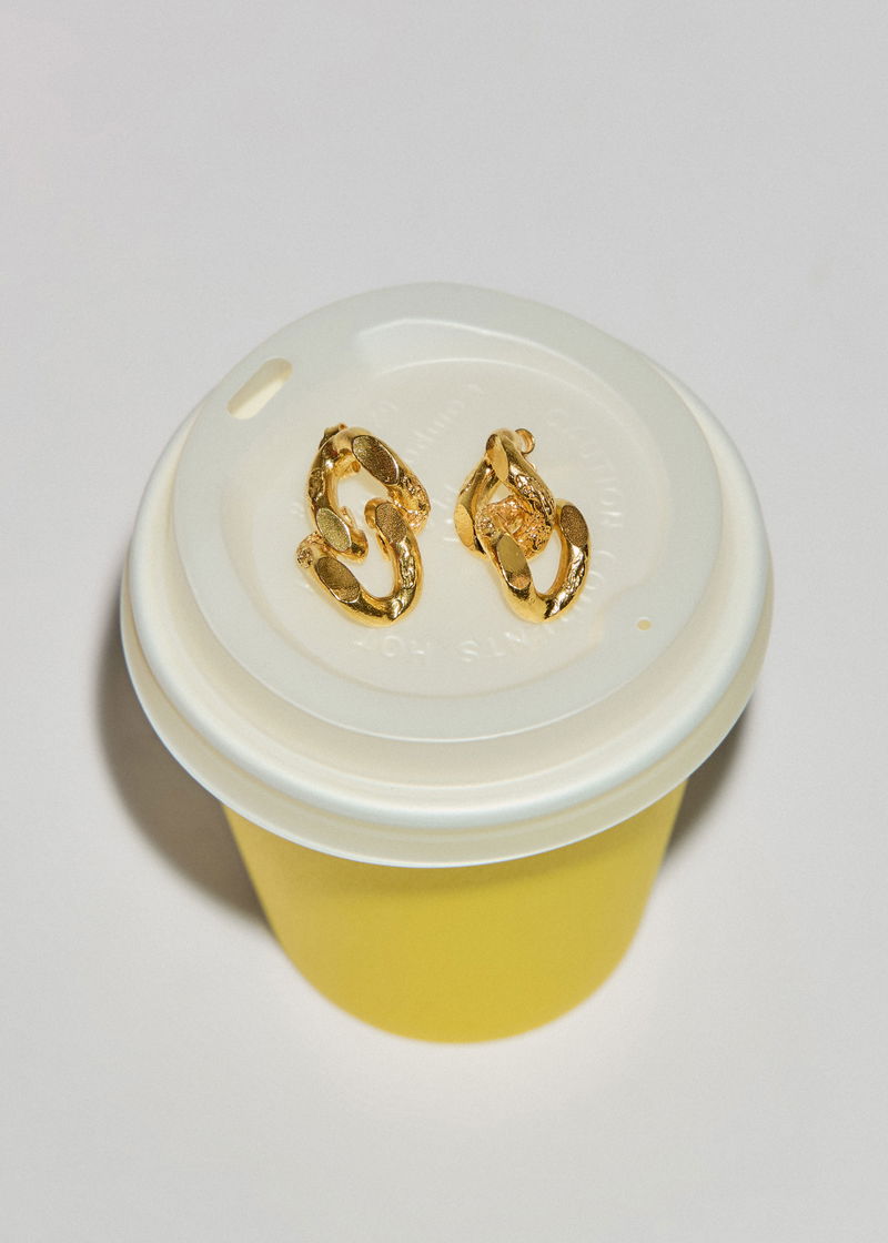 ME+EM's Gold Fractured Link Earring is made from 24kt gold-plated recycled bronze.