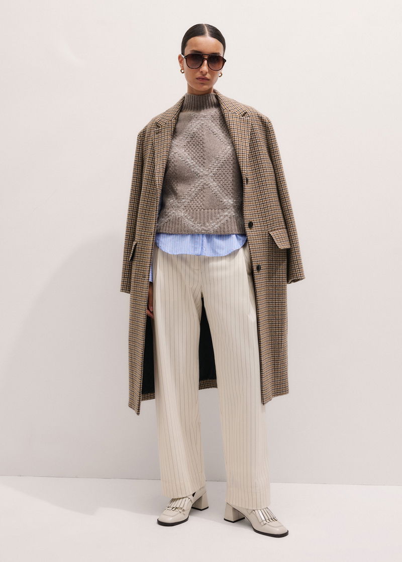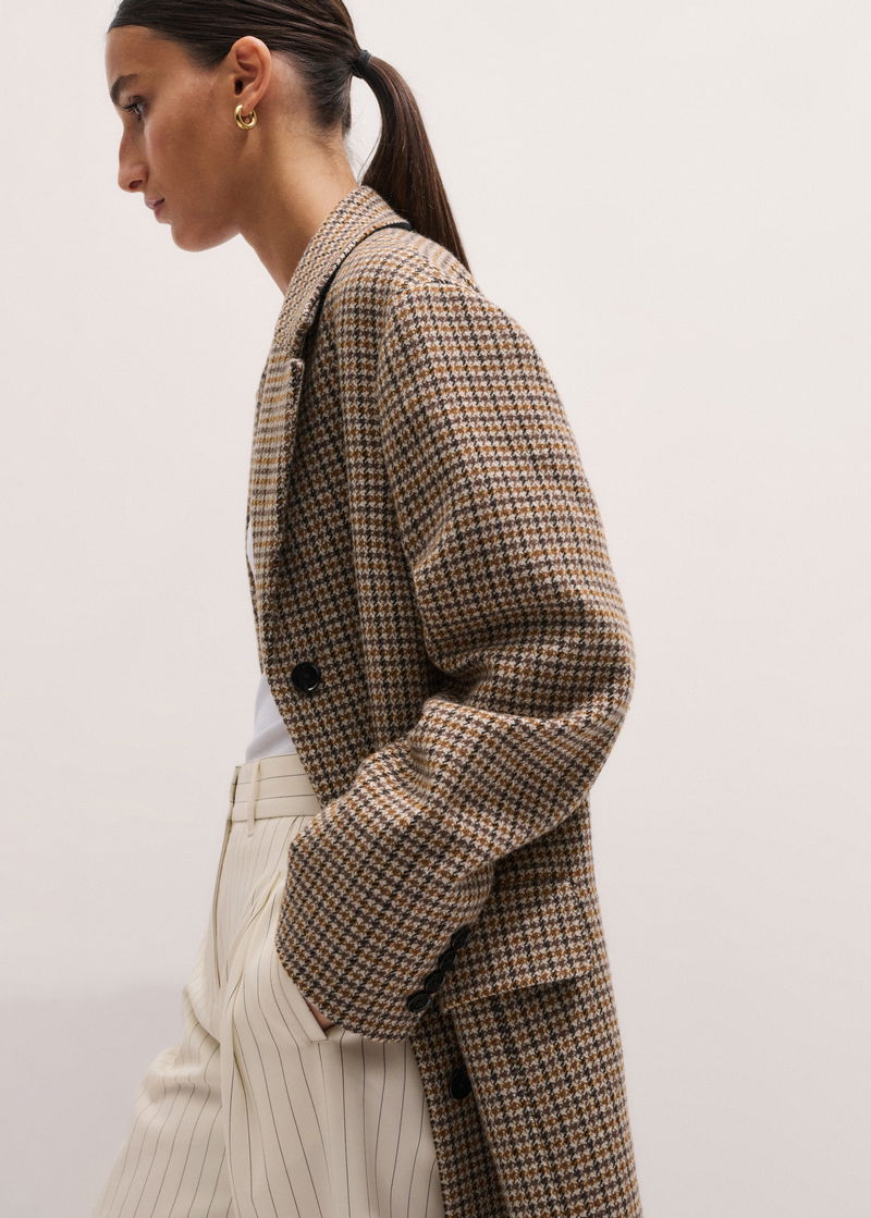 ME+EM's Brown Heritage Wool Coat is granted a graphic edge with a dogtooth pattern.
