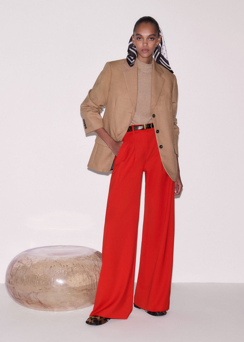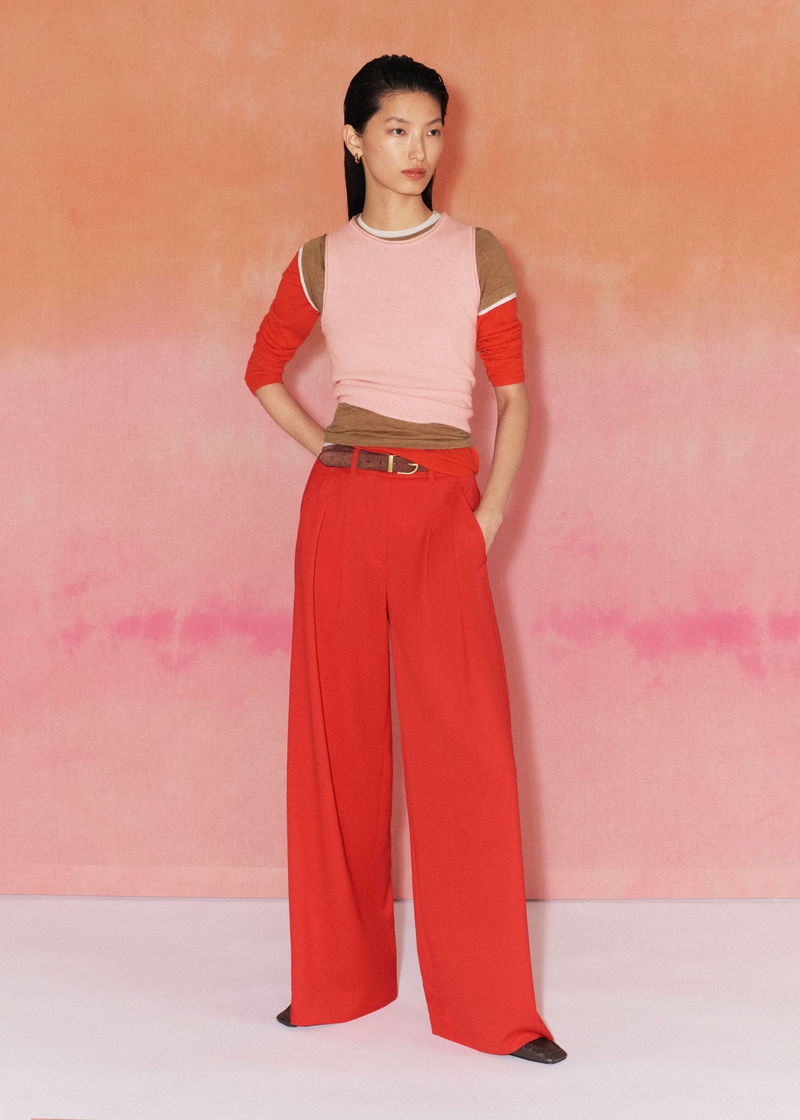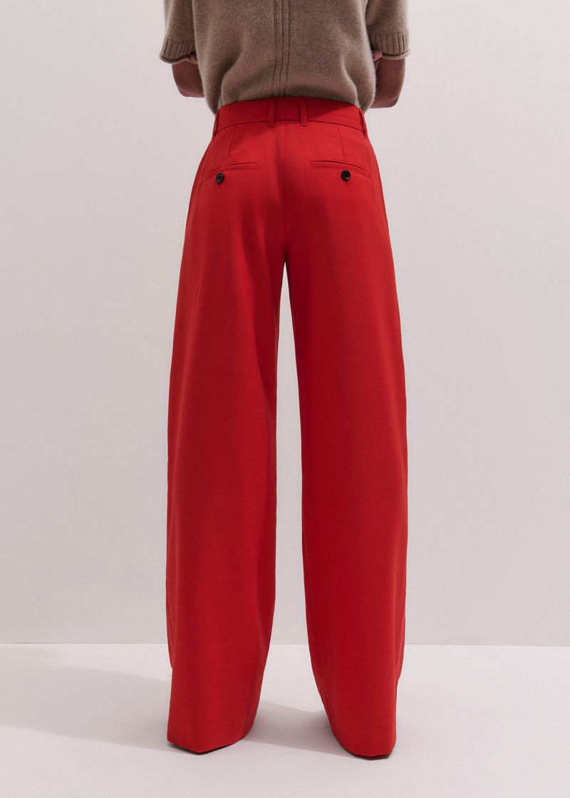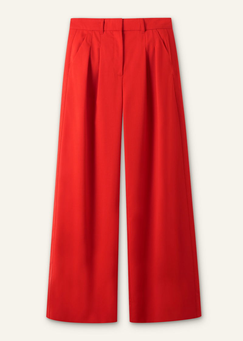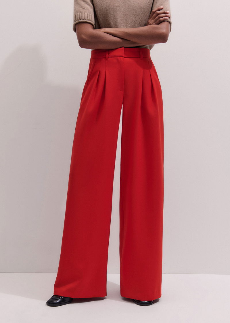 ME+EM's Red Perfect Wide Pleat Front Pant has clean, controlled volume through the wide-leg silhouette.