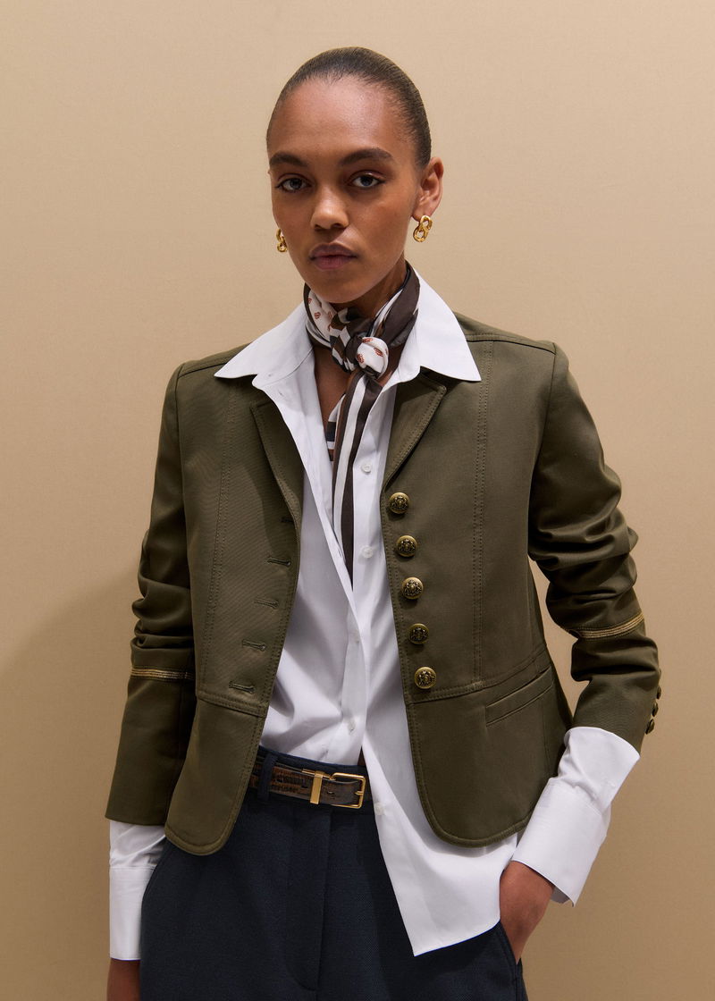 ME+EM's Khaki Wear With Everything Fitted Utility Jacket is made from cotton twill with a soft yet structured feel.