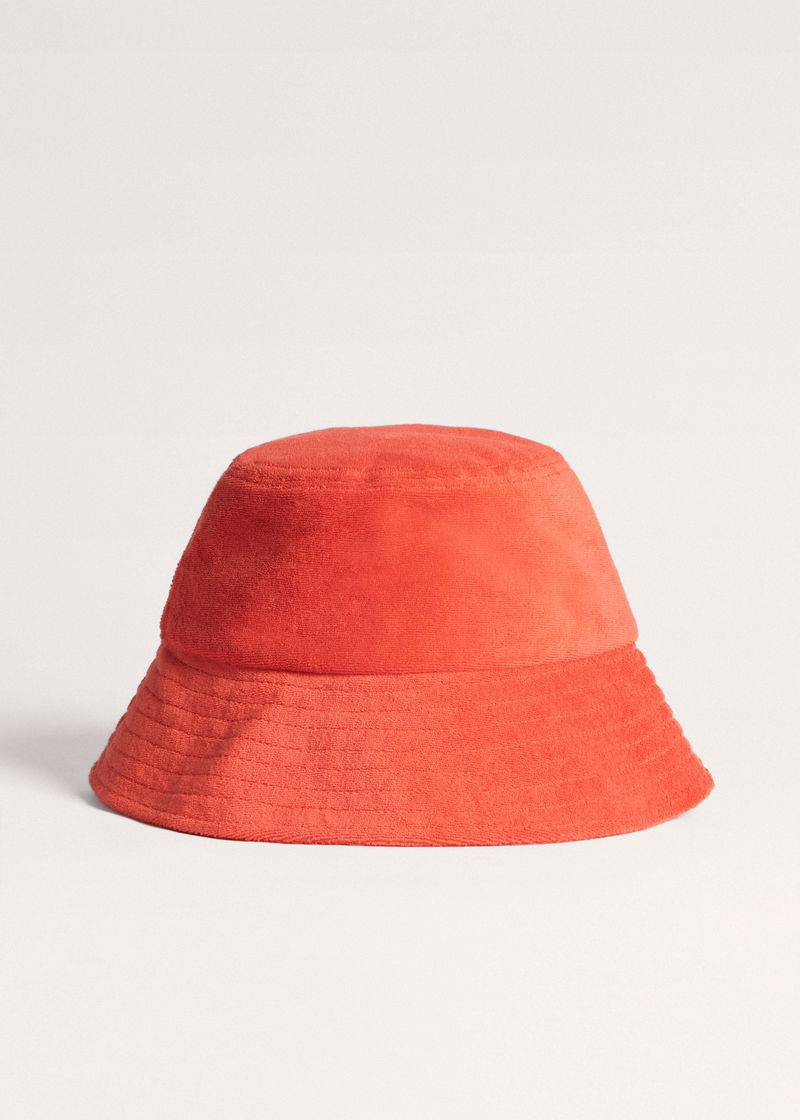ME+EM's Orange Towelling Bucket Hat has an extended rim that shields your face from the sun.