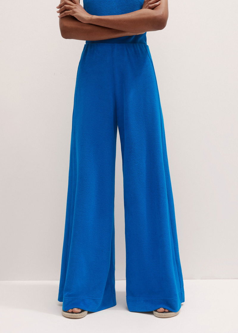 A bold blue hue and tactile towelling add a statement edge to ME+EM's Blue Towelling Extreme Palazzo Pant.