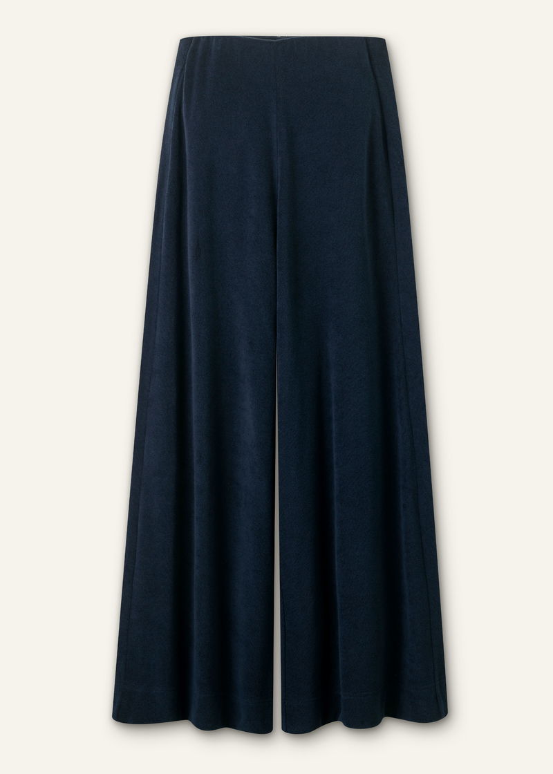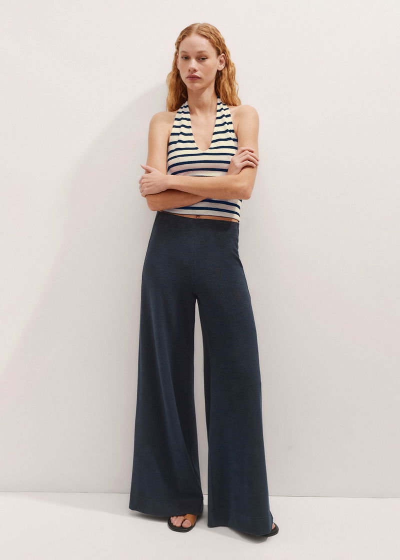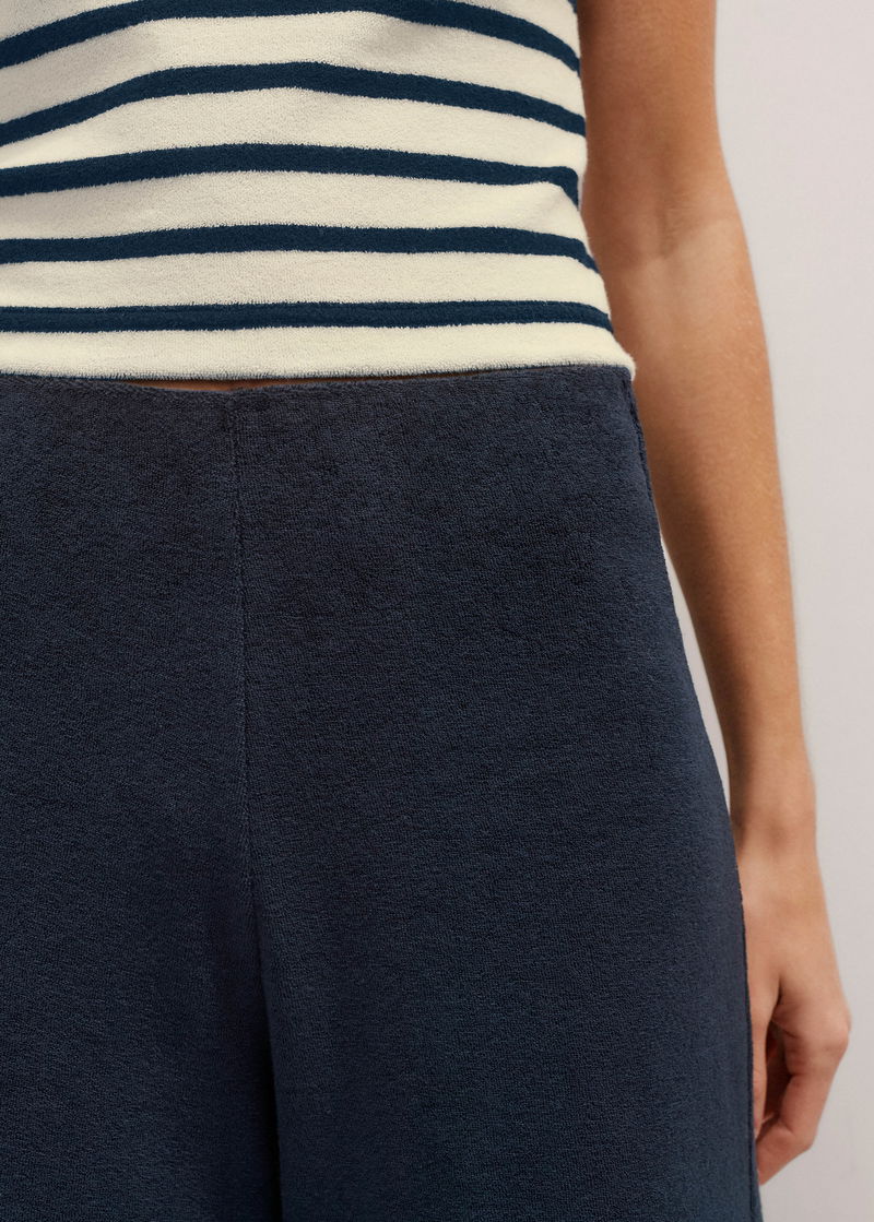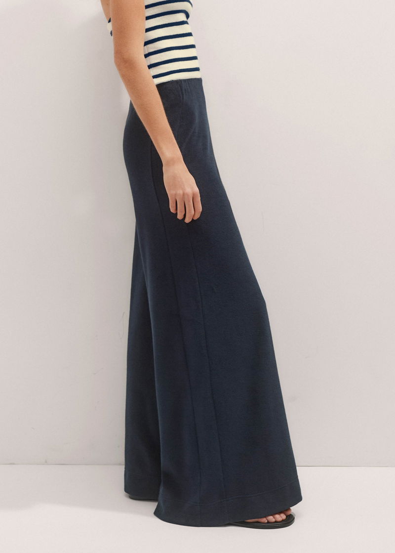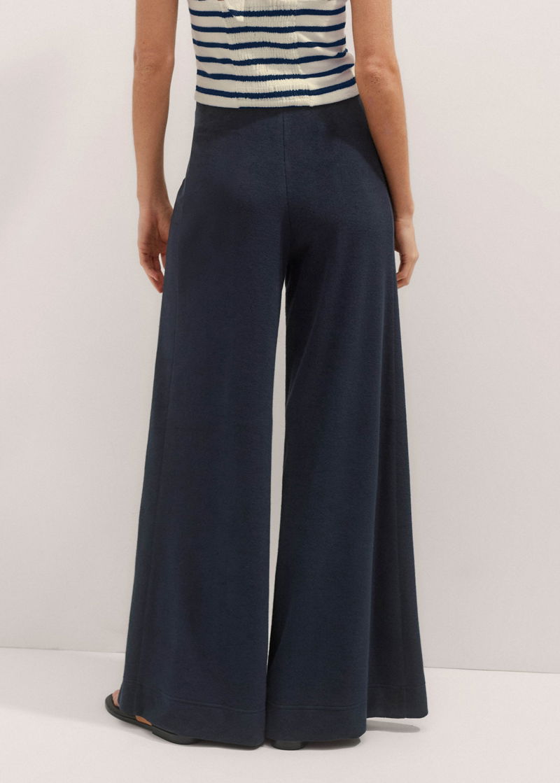 ME+EM's Navy Towelling Extreme Palazzo Pant falls to an extra wide-leg silhouette and is equipped with an elasticated waistband for comfort.