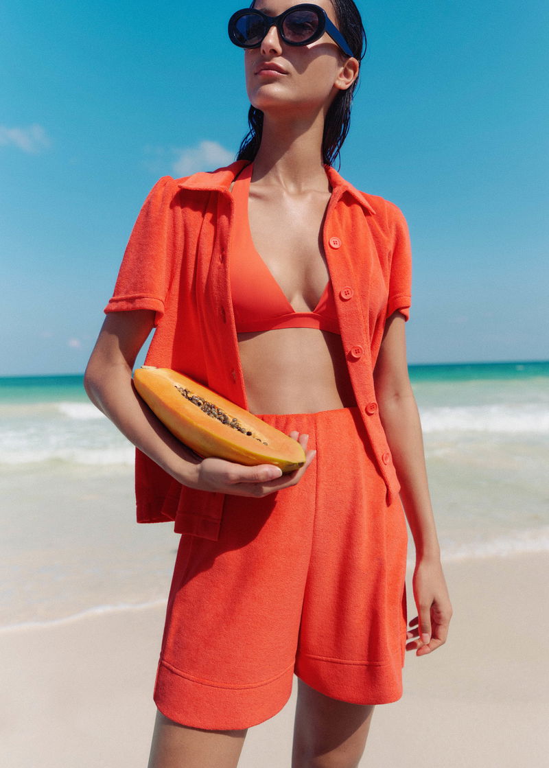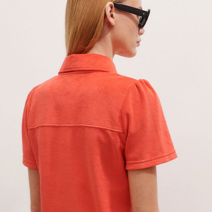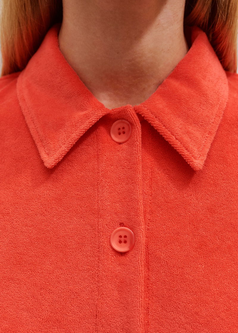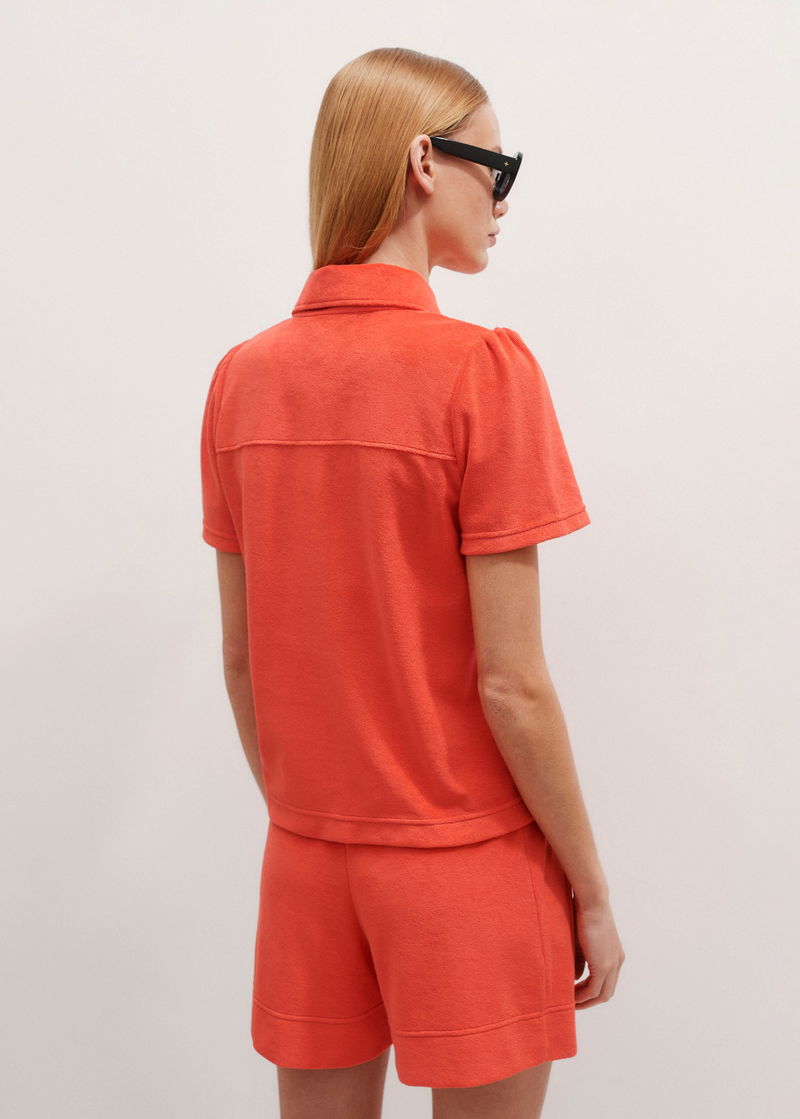Towelling Short-Sleeve Shirt Bright Papaya Orange