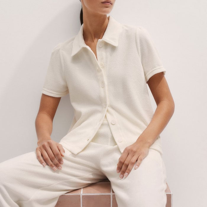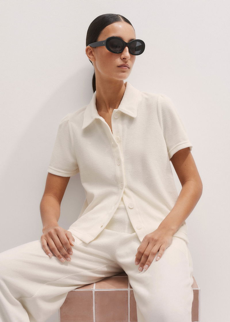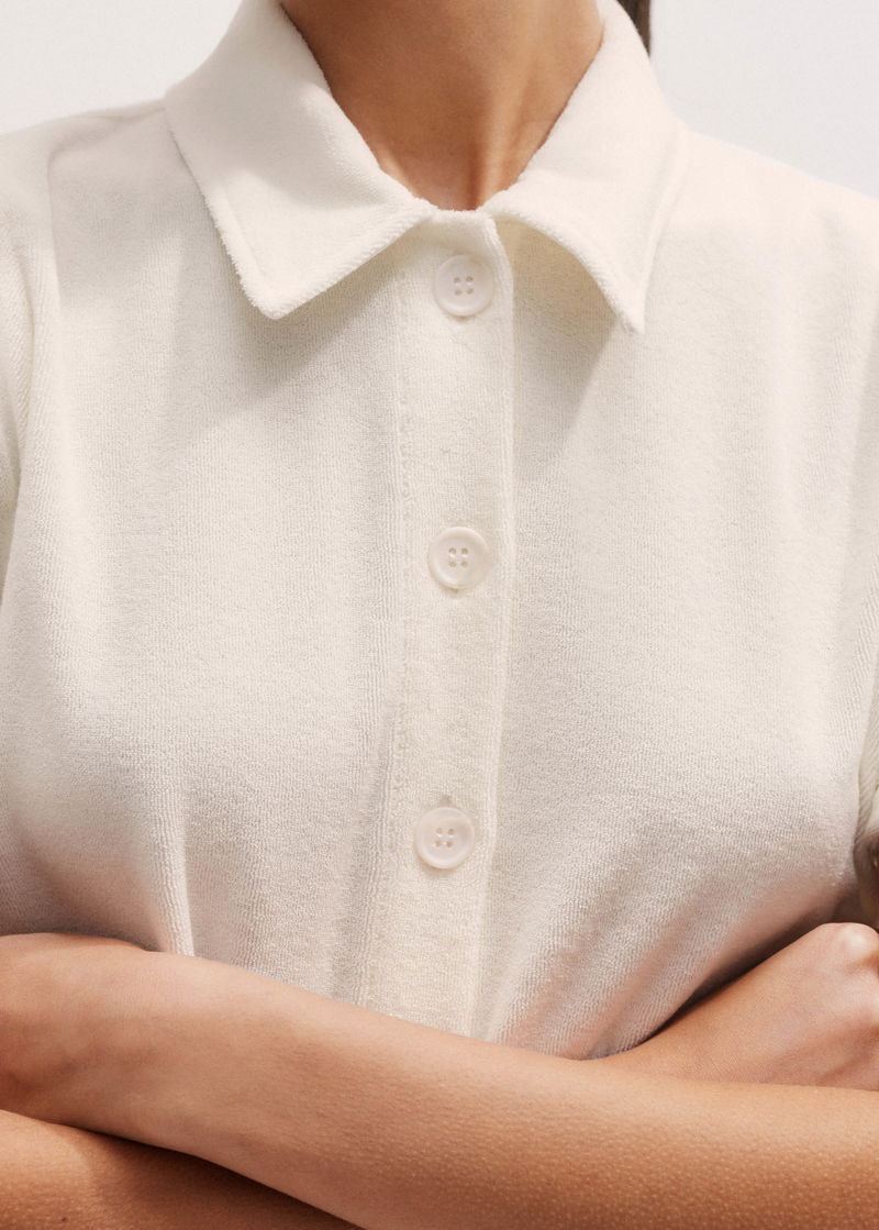 Towelling Short-Sleeve Shirt Cream