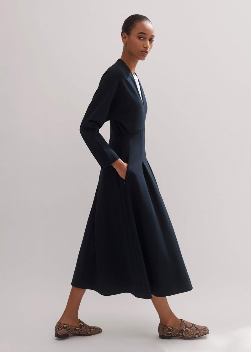 Travel Tailoring Fit And Flare Midi Dress Navy