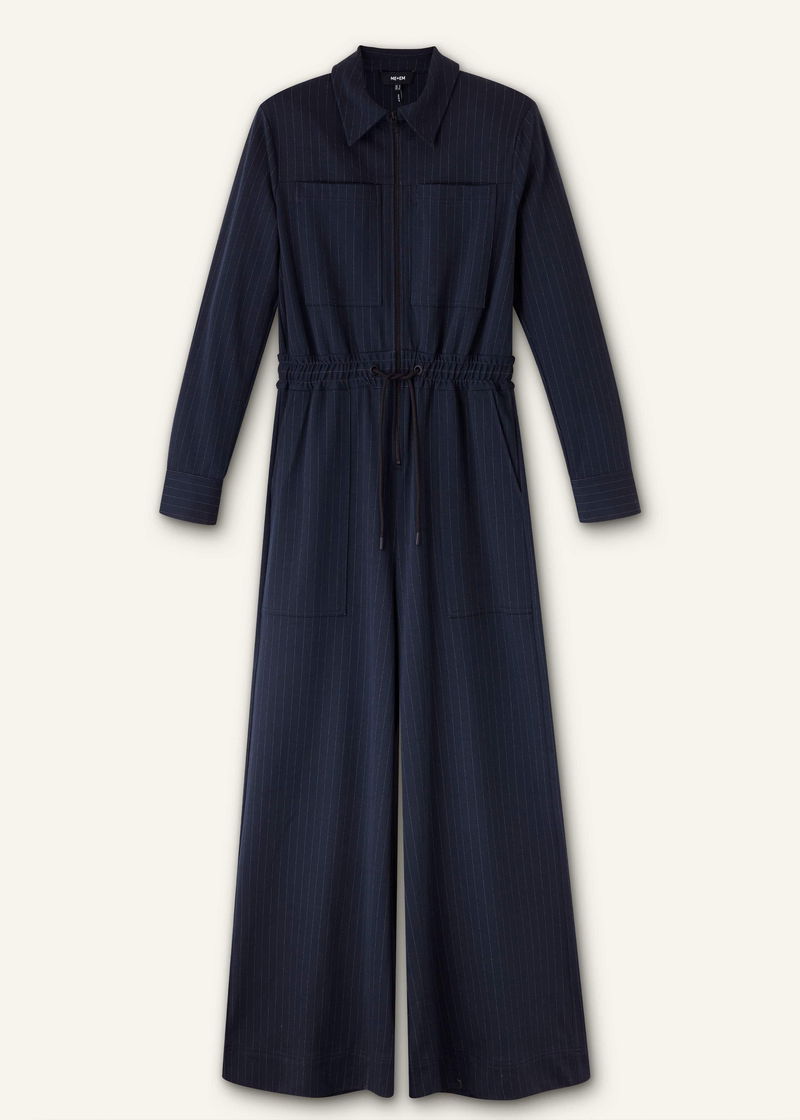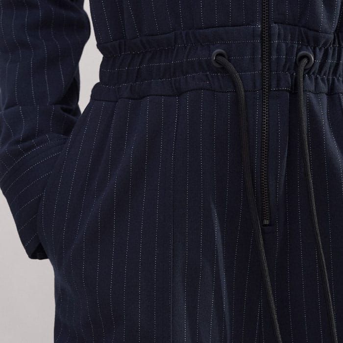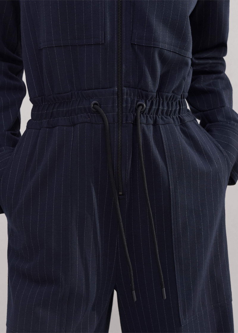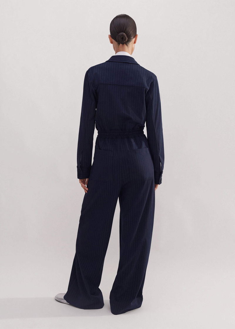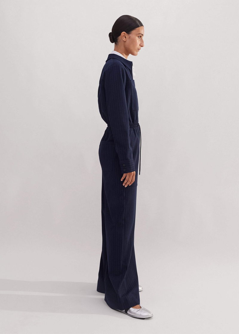 Travel Tailoring Pinstripe Cargo Jumpsuit Navy/White