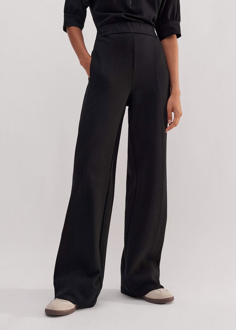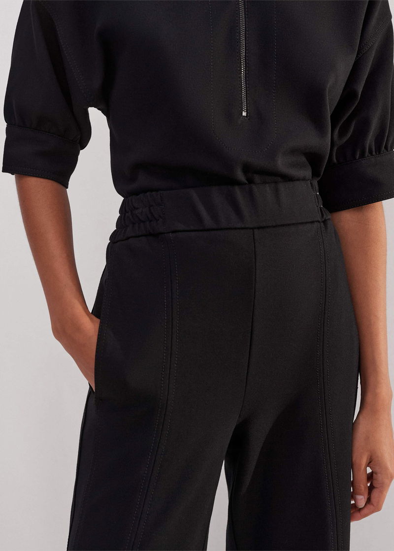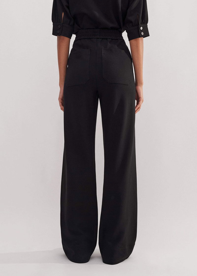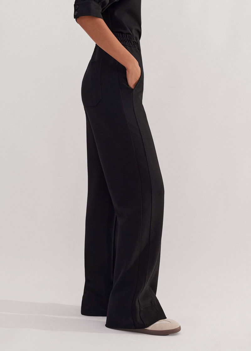 ME+EM's Black Travel Tailoring Wide-Leg Trouser is made from crease-free, stretch-infused ponte tailoring with a pull-on elasticated waistband for comfort.