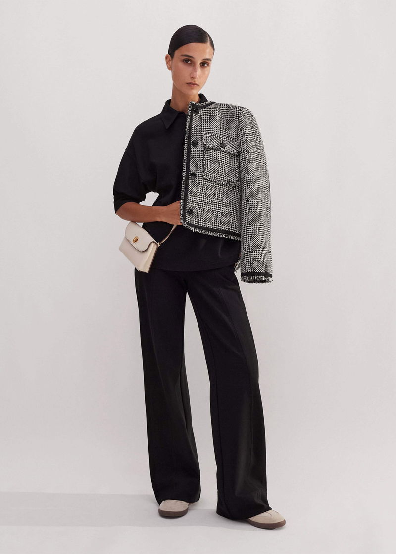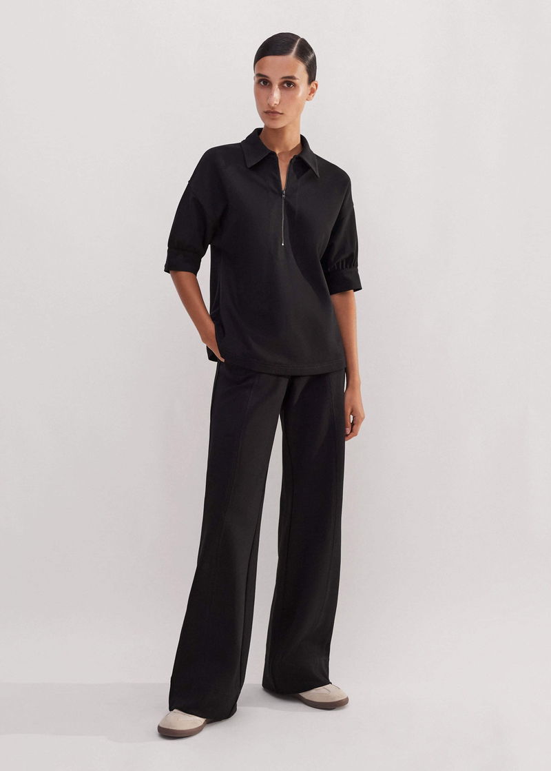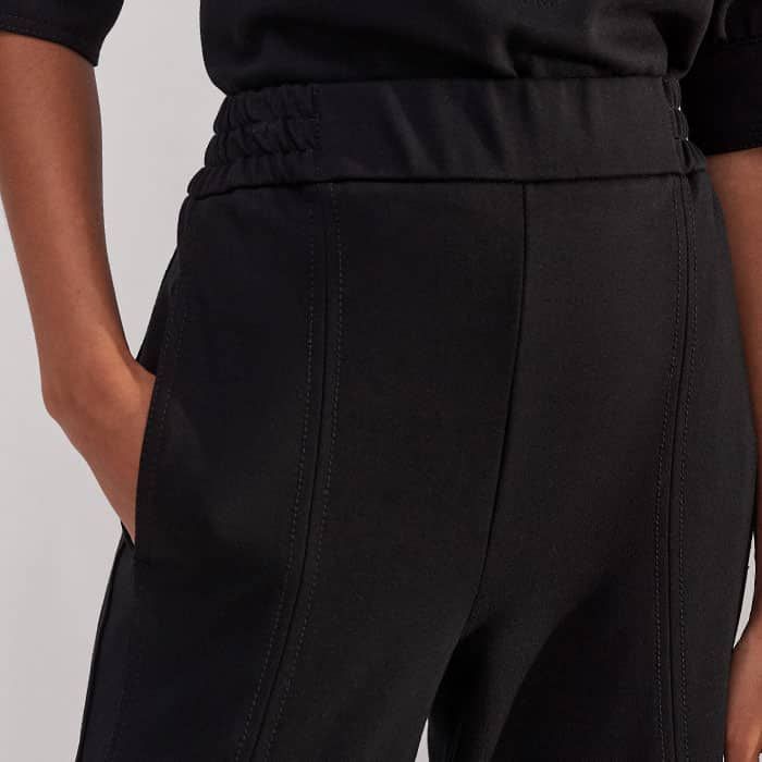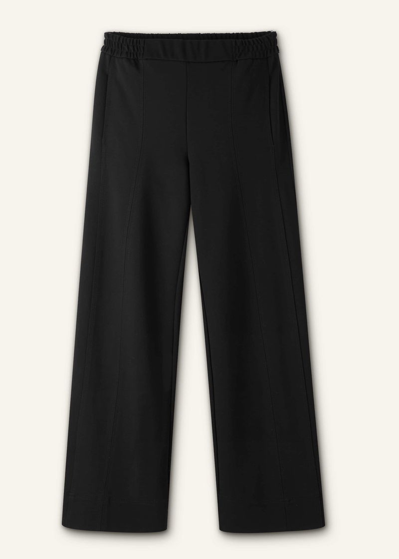 ME+EM's Black Travel Tailoring Wide-Leg Trouser is made from crease-free, stretch-infused ponte tailoring with a pull-on elasticated waistband for comfort.