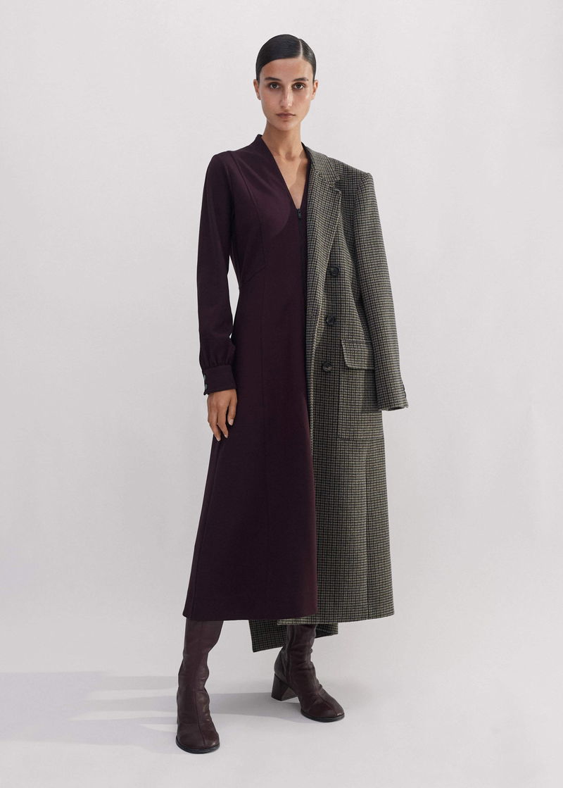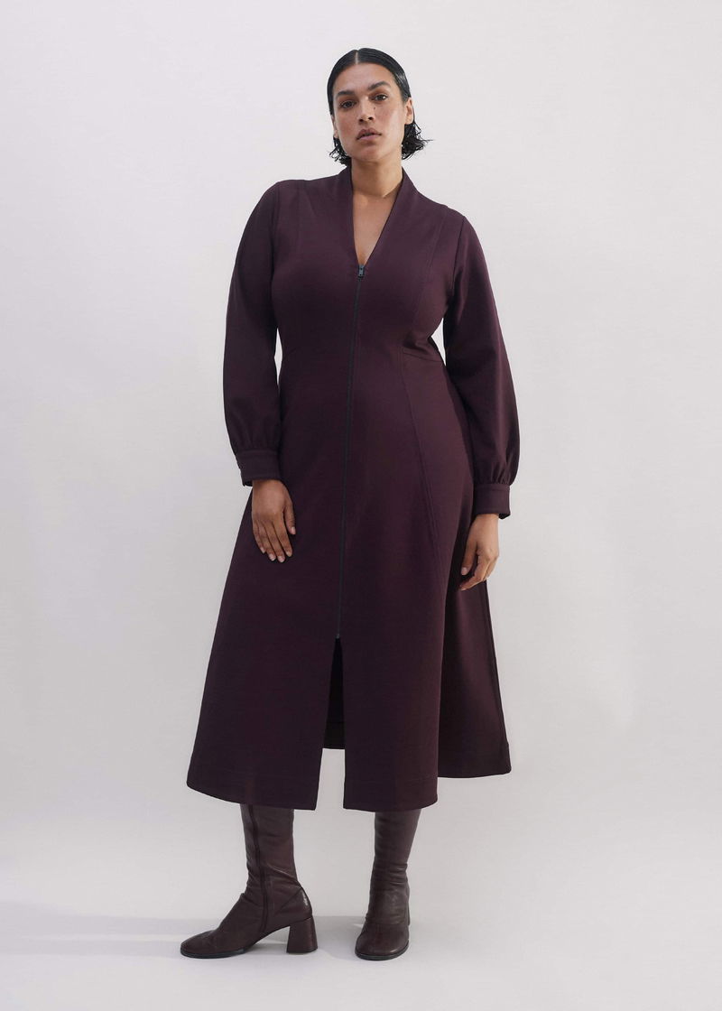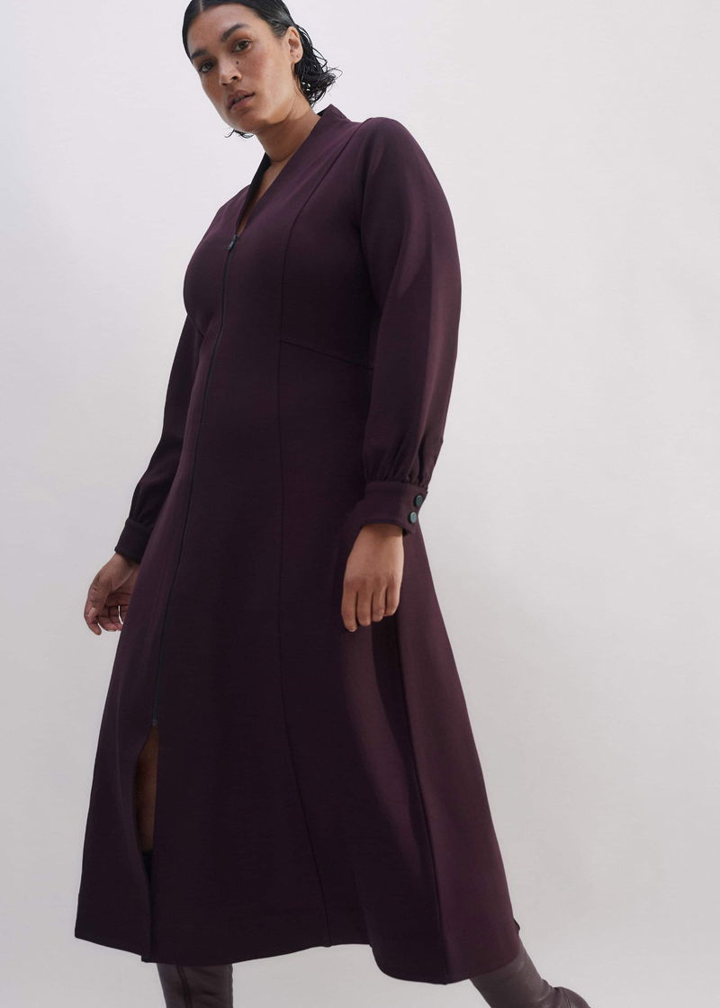 Travel Tailoring Zip Front Midi Dress Deep Merlot
