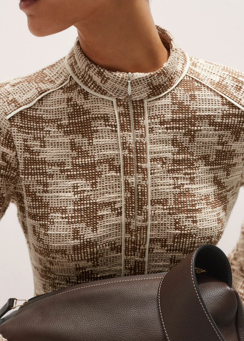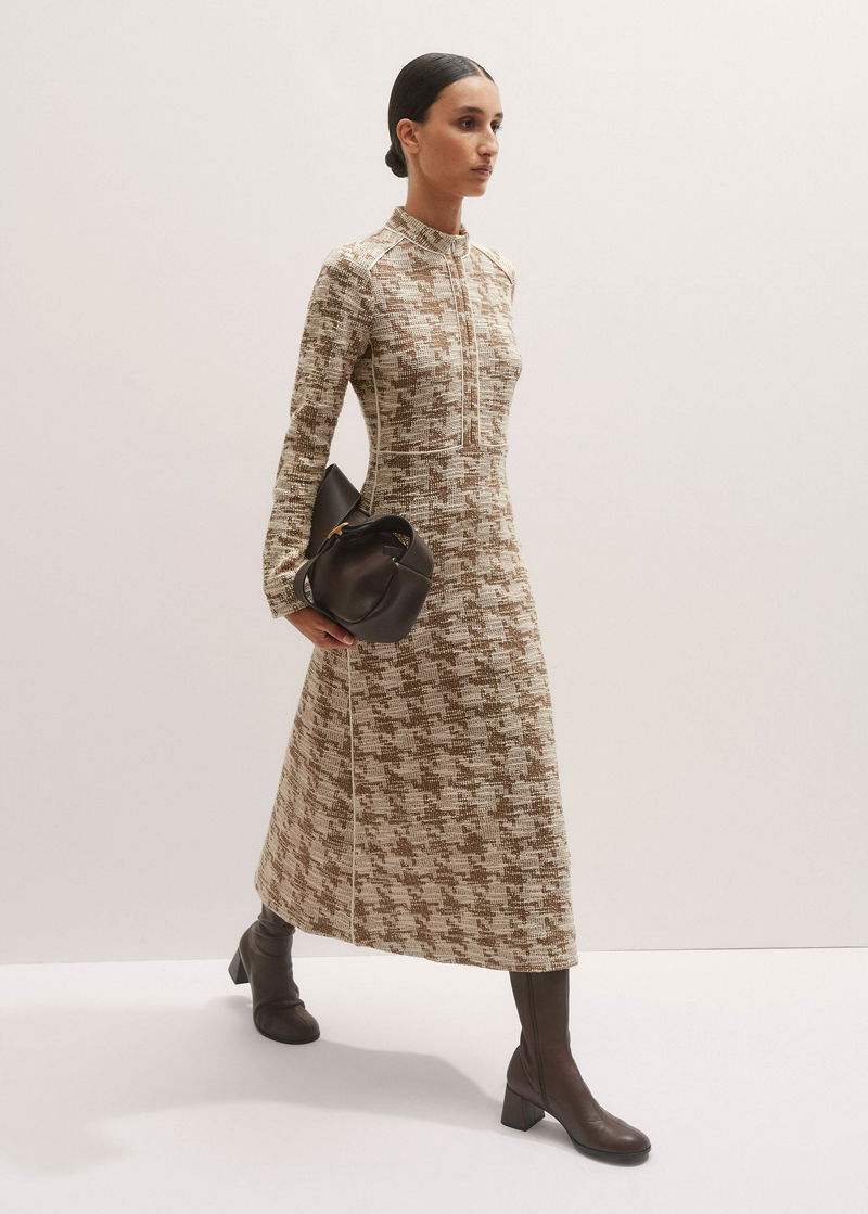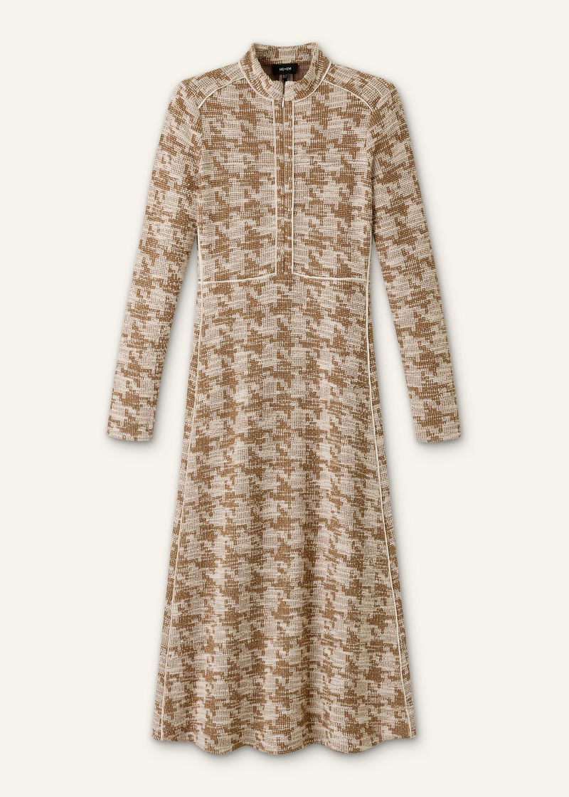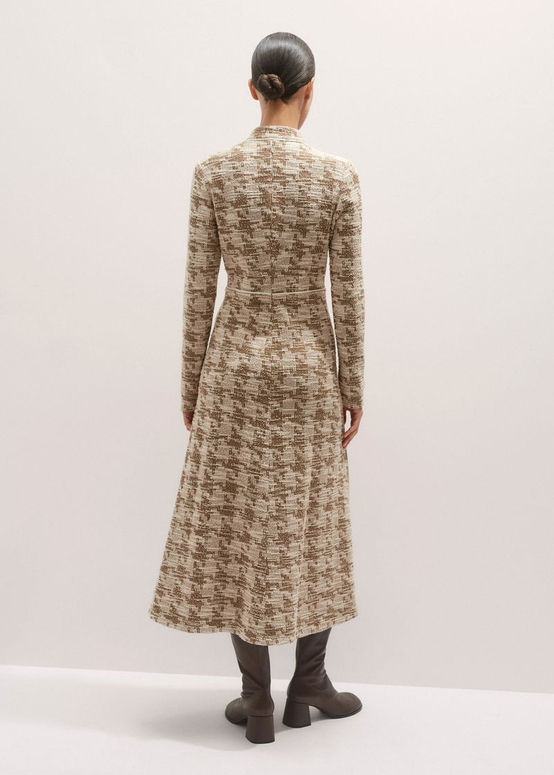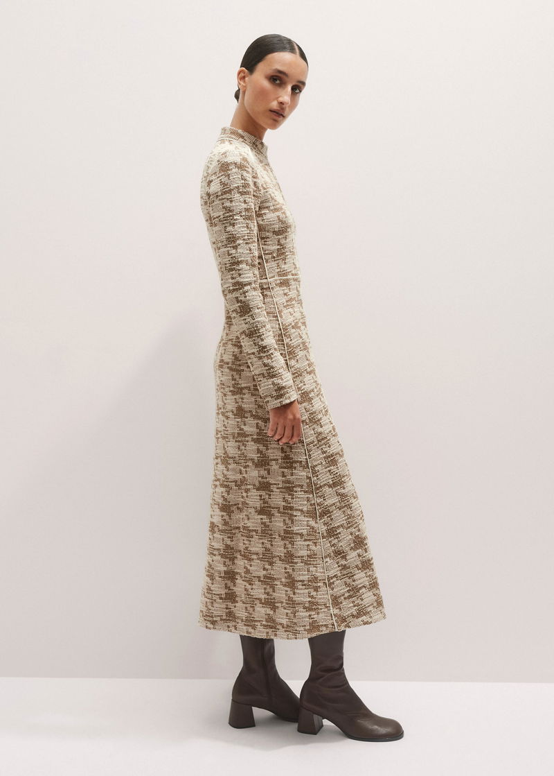Travel Tweed Midi Dress Camel/Ivory