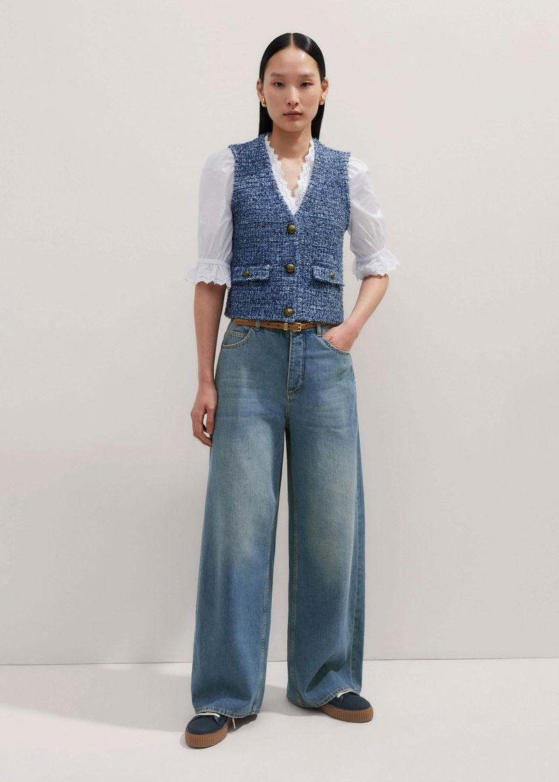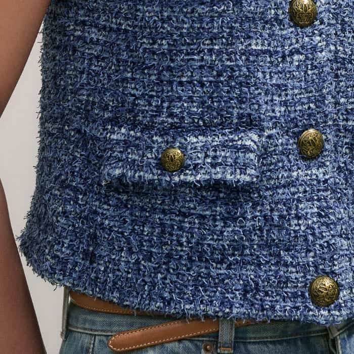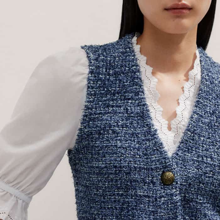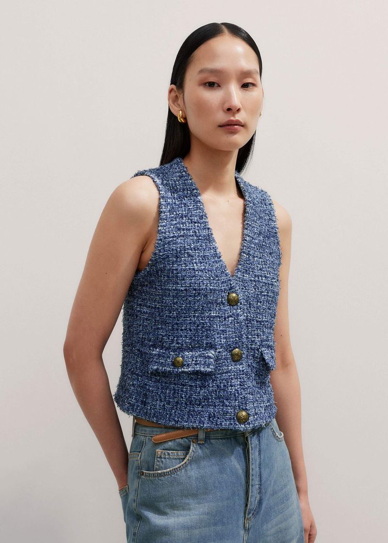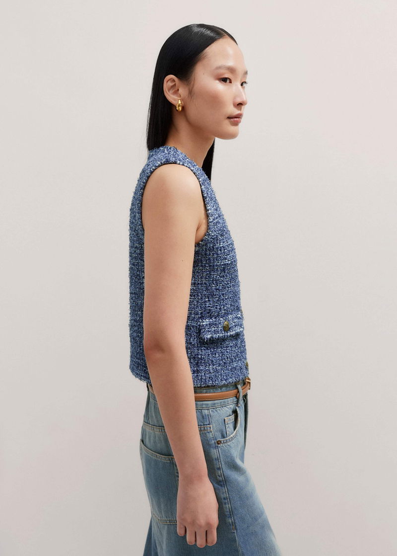 Tweed Knit Layering Vest Blue Multi