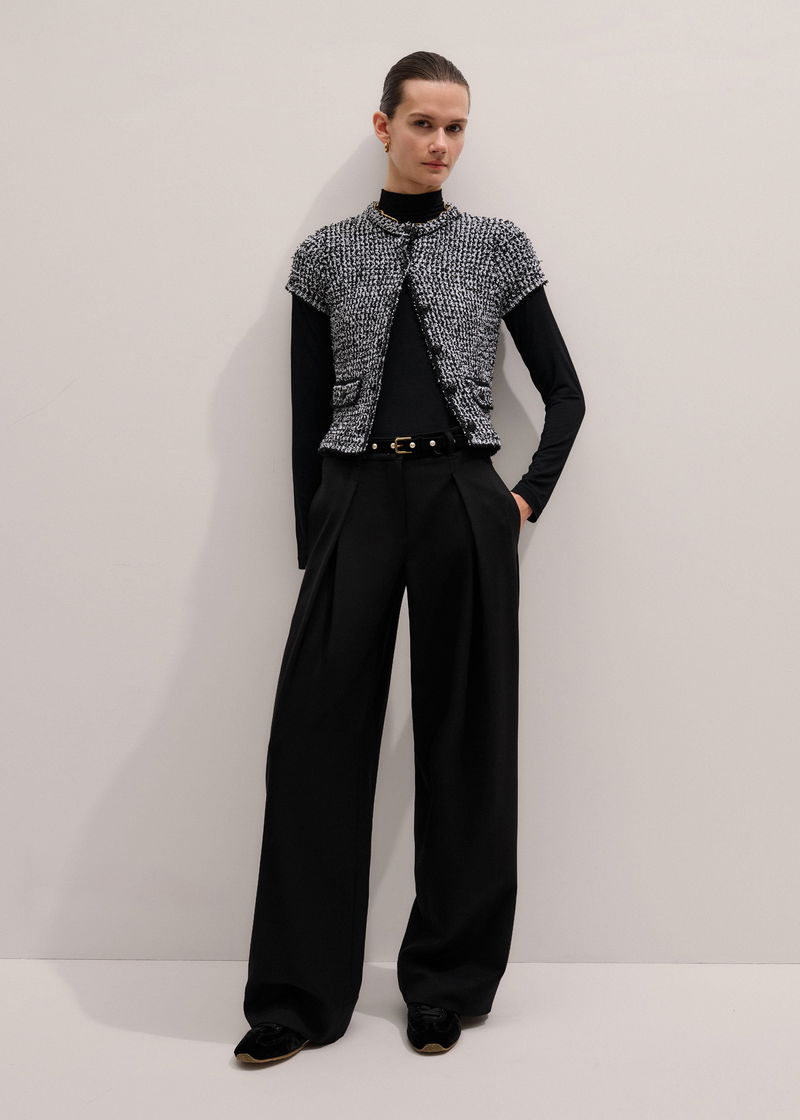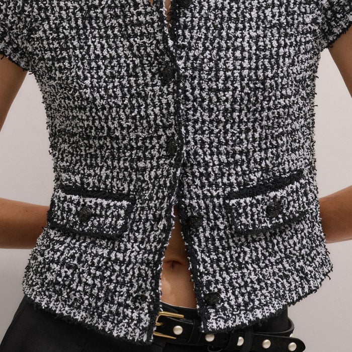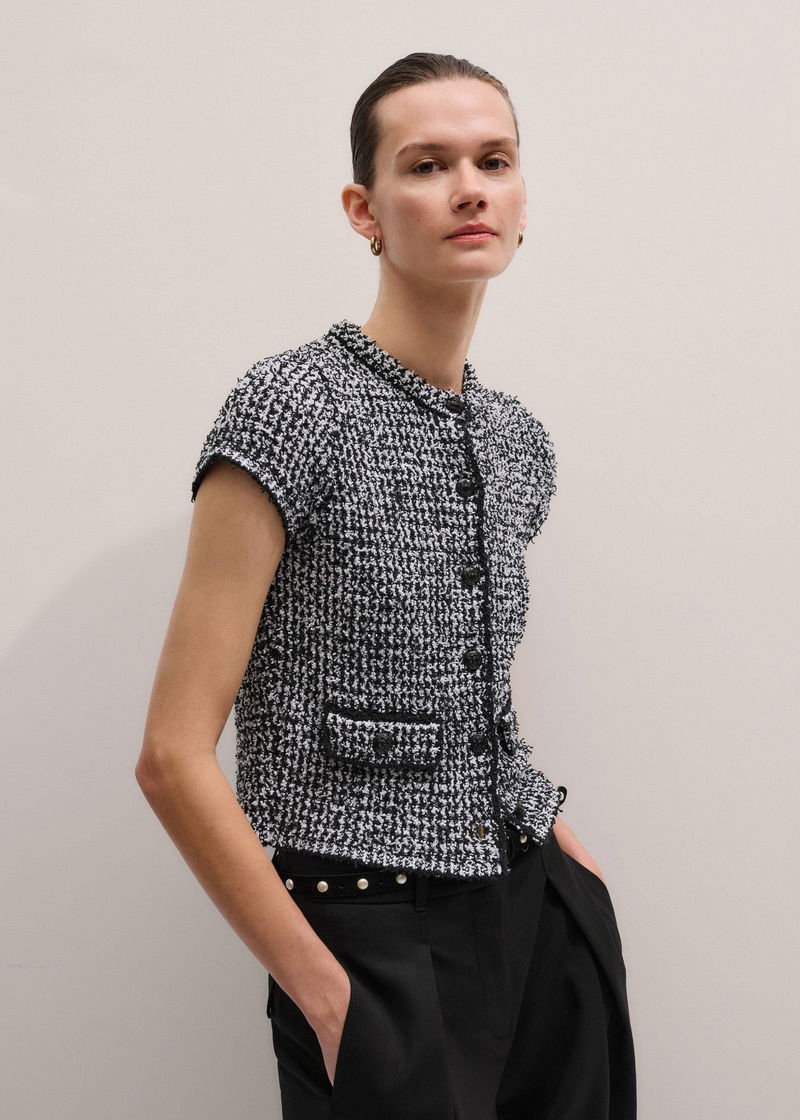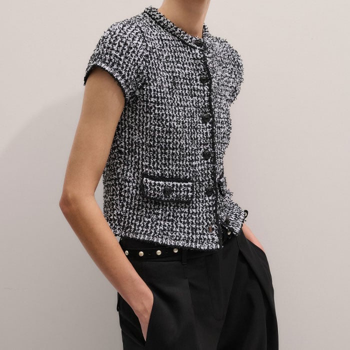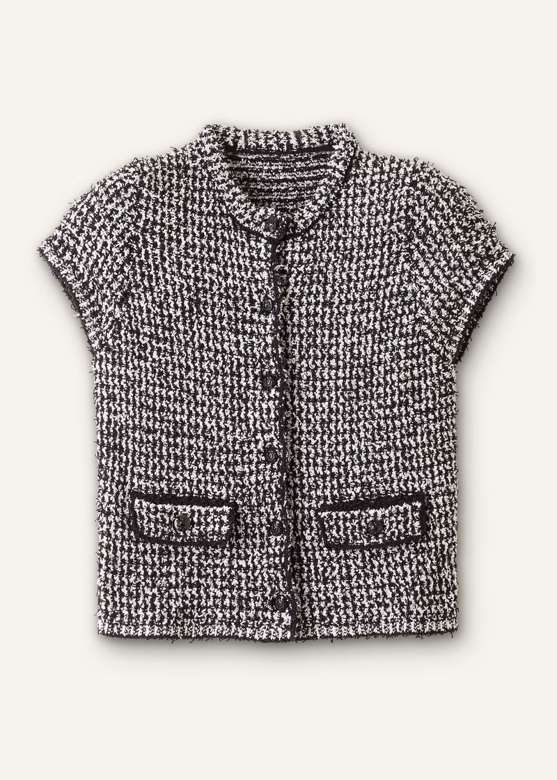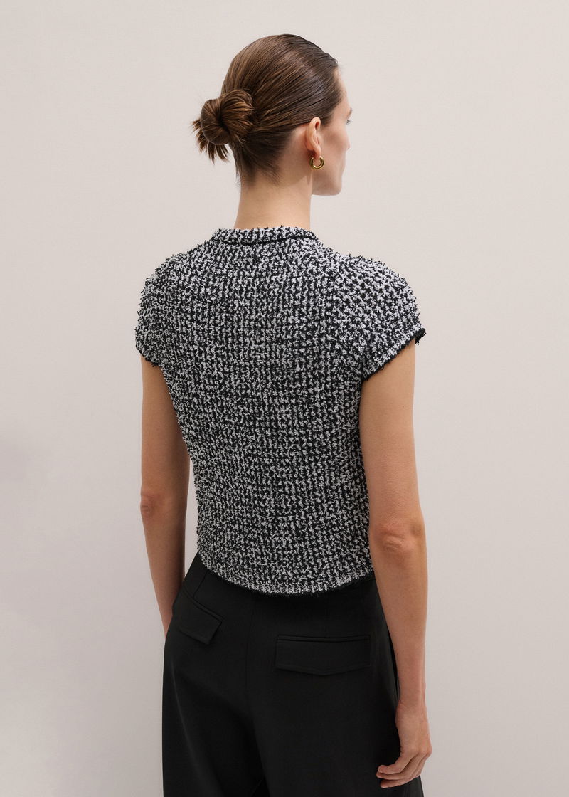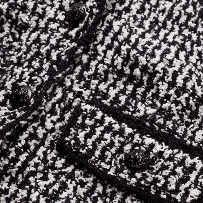 Tweed Knit Pouf Sleeve Crop Jacket Black/White