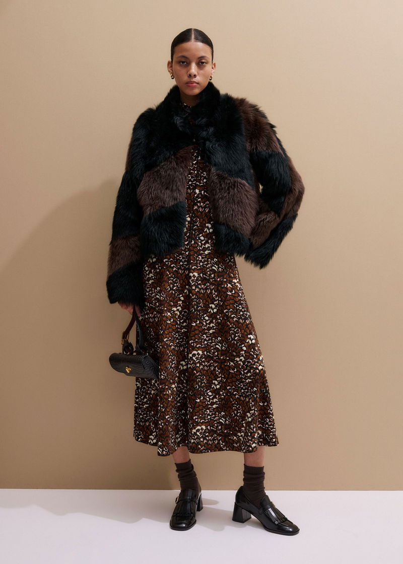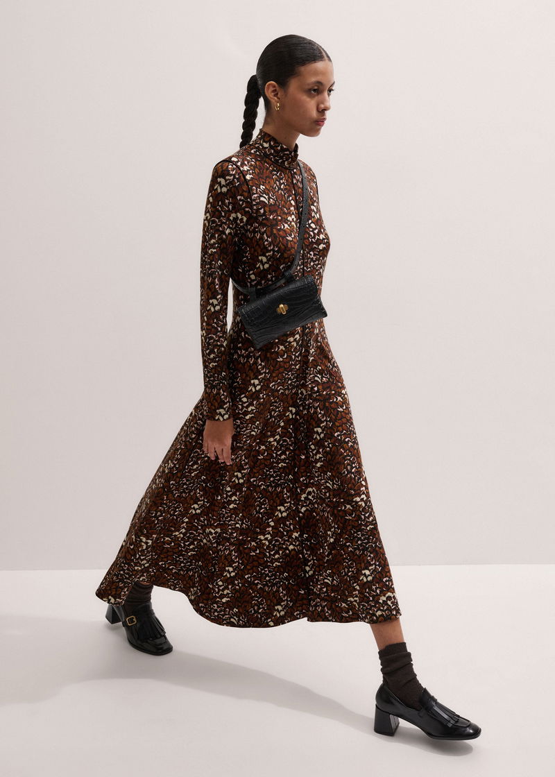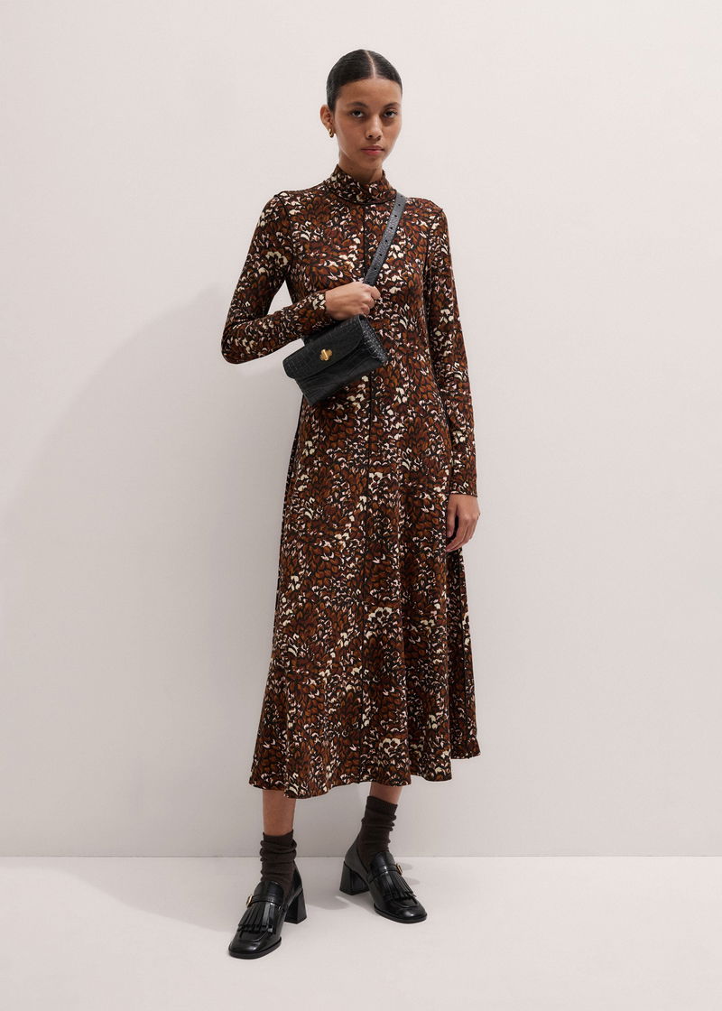 Twisting Feather Print High Neck Maxi Dress Brown Multi