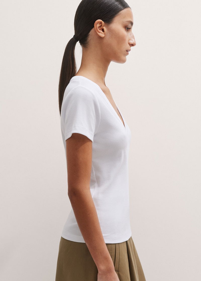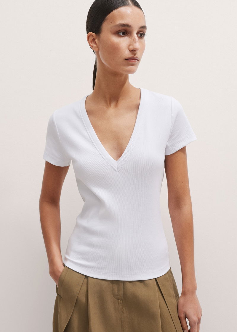 Ultimate Fitted Rib V-Neck Tee Bright White