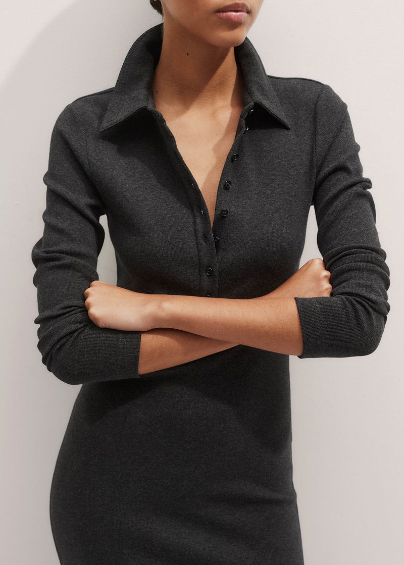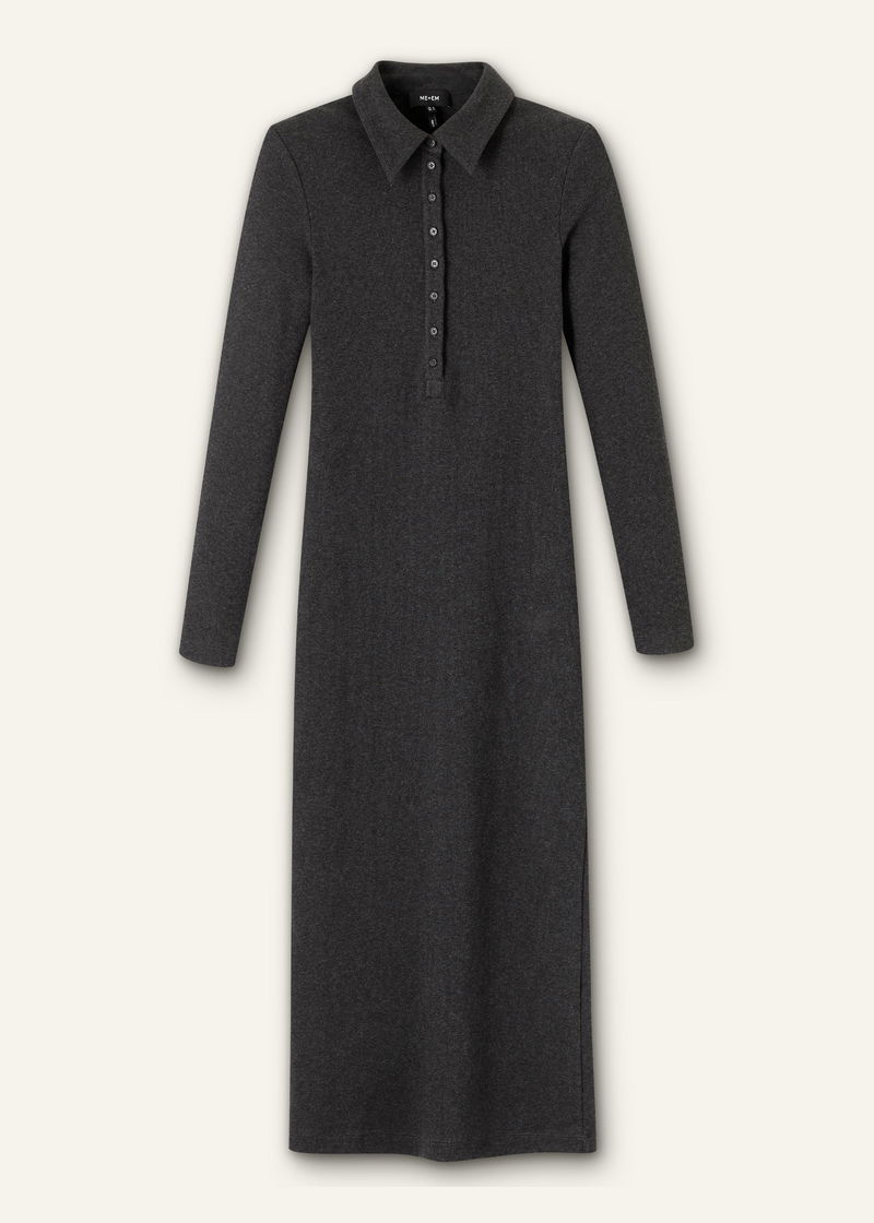 Ultimate Rib Shirt Midi Dress Charcoal Mélange
