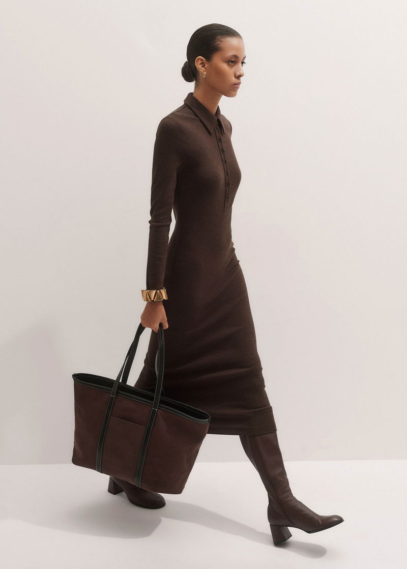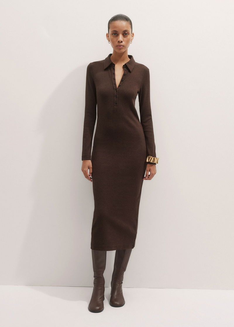 Ultimate Rib Shirt Midi Dress Chocolate Mélange