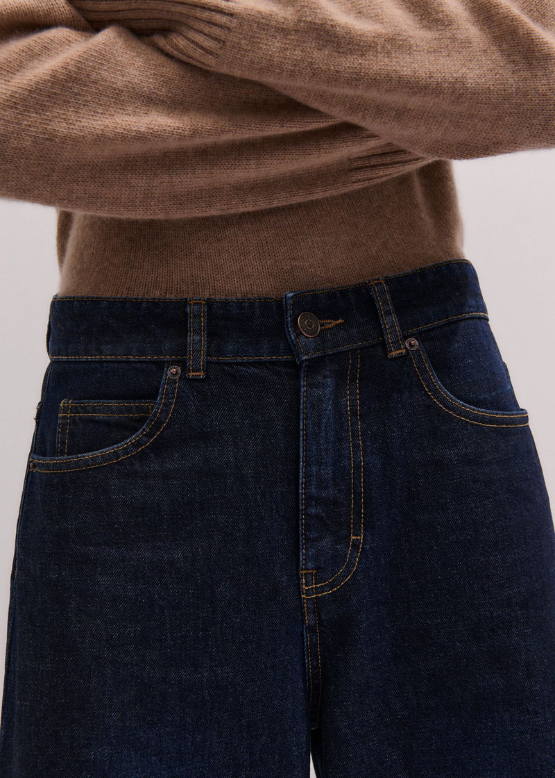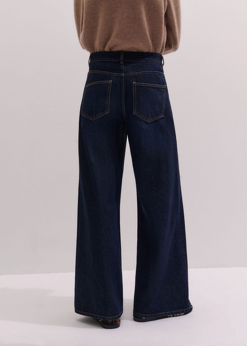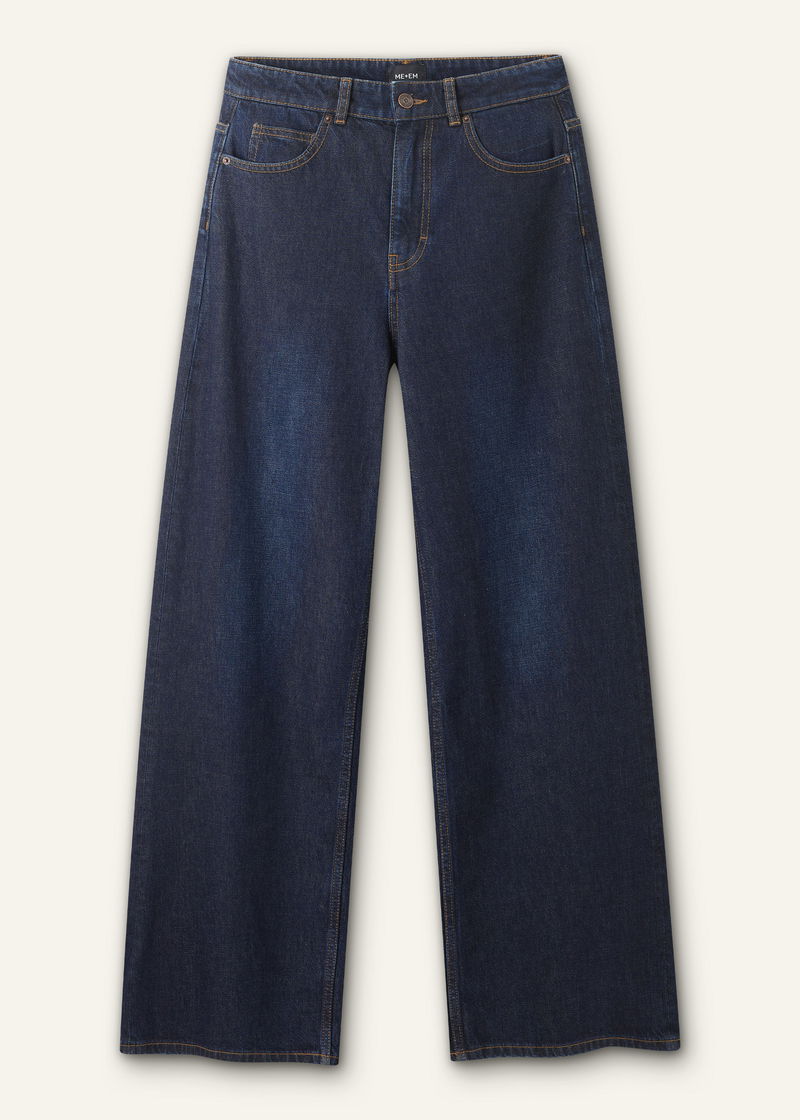 ME+EM's Dark Blue Rinse Wash Ultimate Wide-Leg Jean is available in a short and regular length to accommodate different heights.