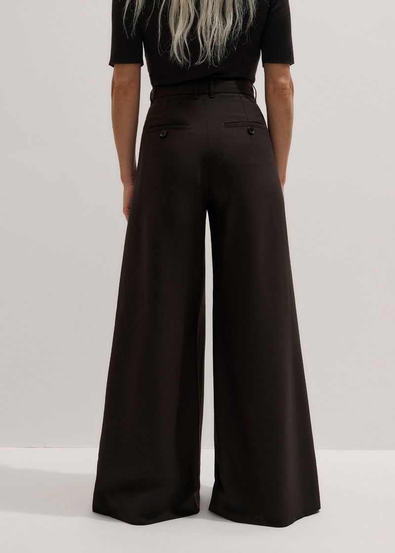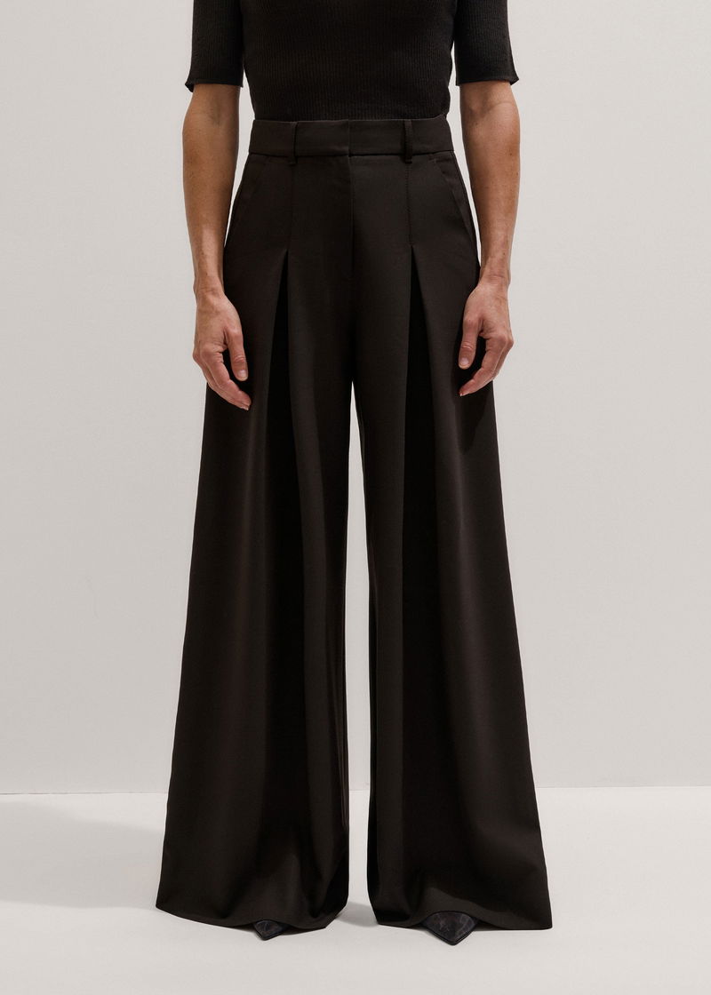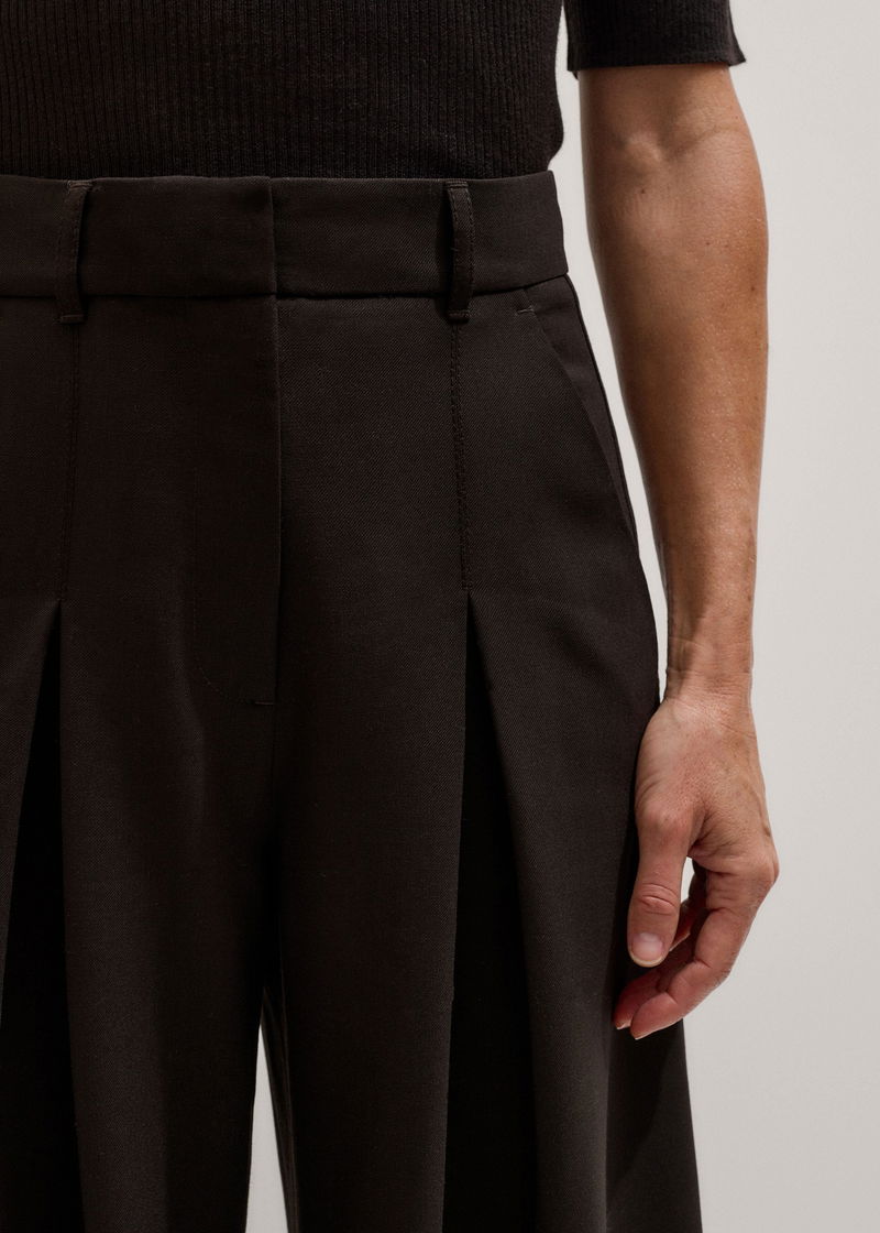 ME+EM's Brown Wool Ultimate Pleat-Front Wide-Leg Trouser is designed with wide hems that create enhanced volume.