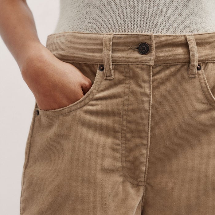 ME+EM's Brown Washed Cord Extreme Seam Pant showcases an extreme tapered leg which curves in at the ankle for a forever-flattering fit.