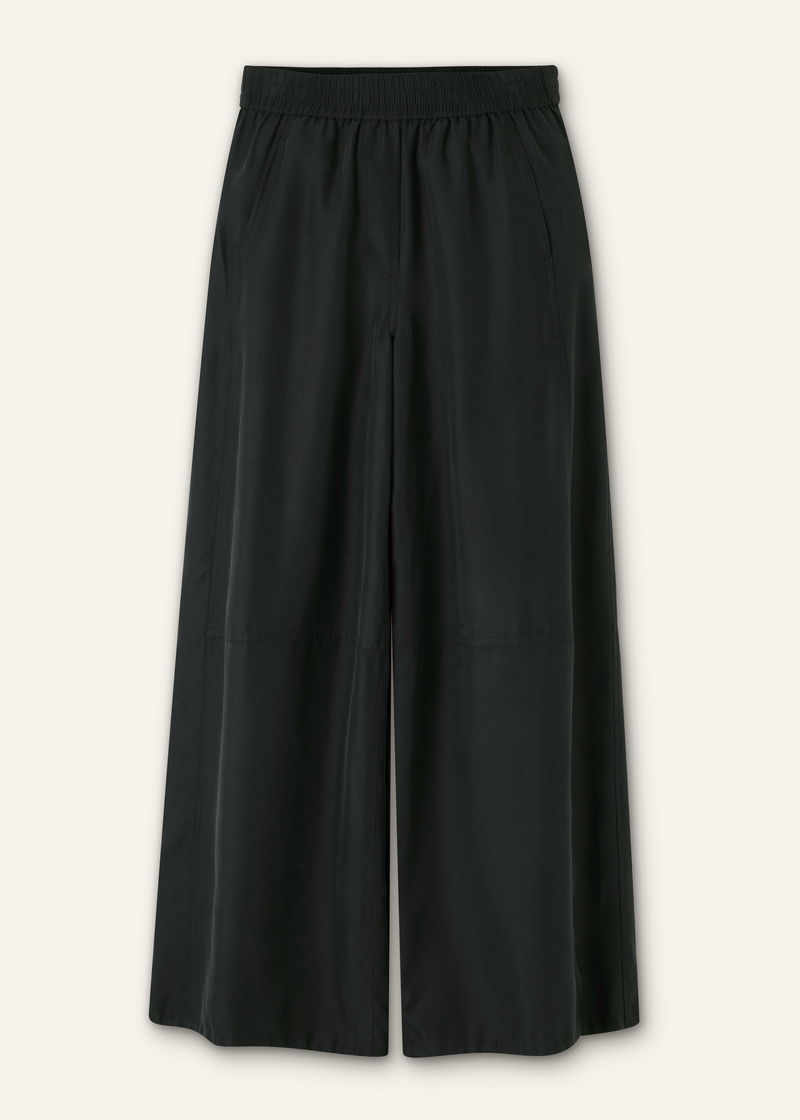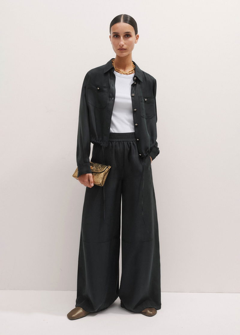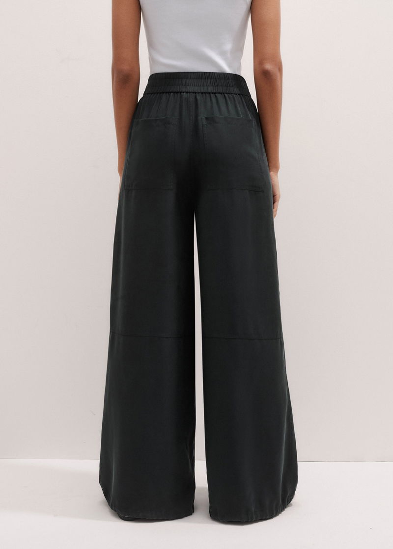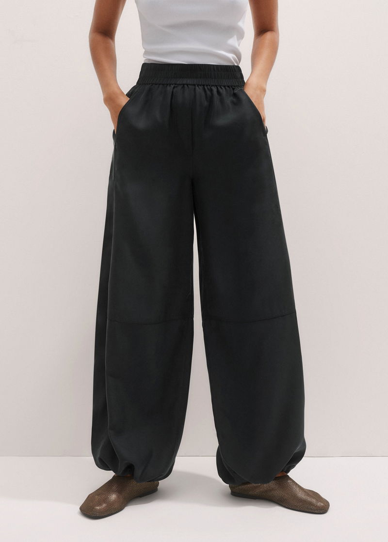 ME+EM's Black Washed Silk Drawstring Wide-Leg Trouser is suspended from an elasticated waist for all-day comfort.