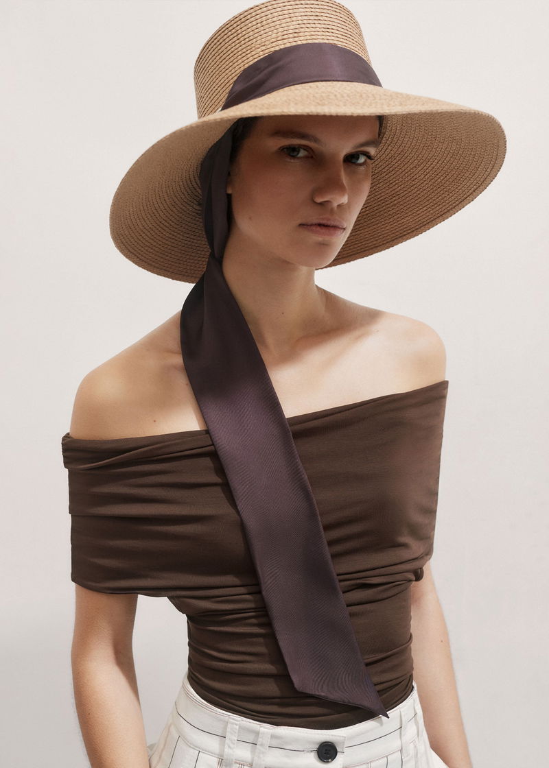 ME+EM's Natural Wide Brim Hat is crafted from lightweight woven paper braiding with a structured wide-brim to shield your face from the sun.