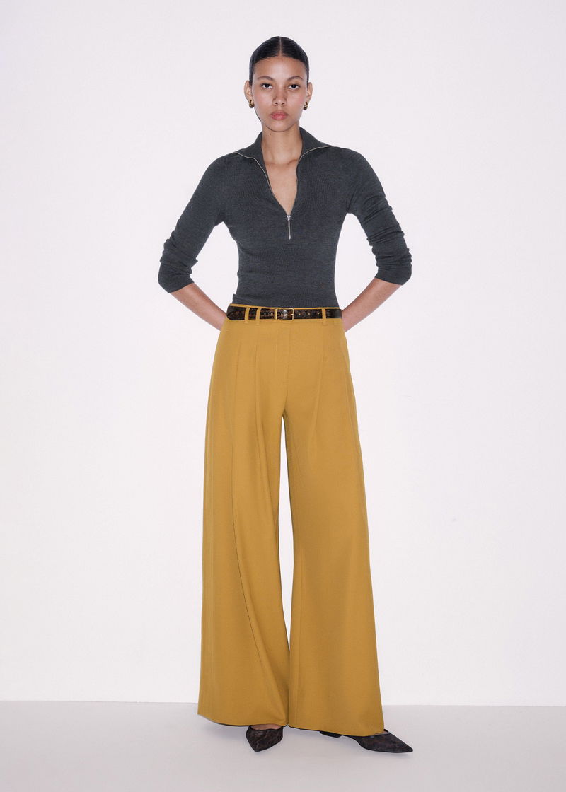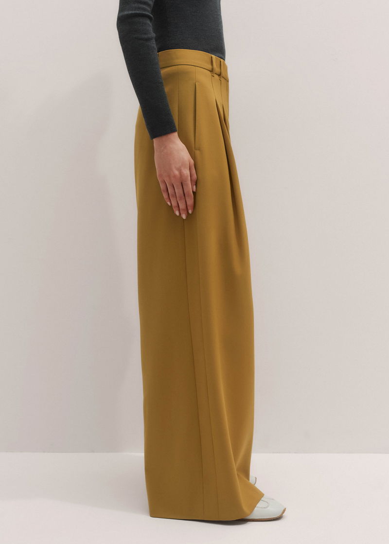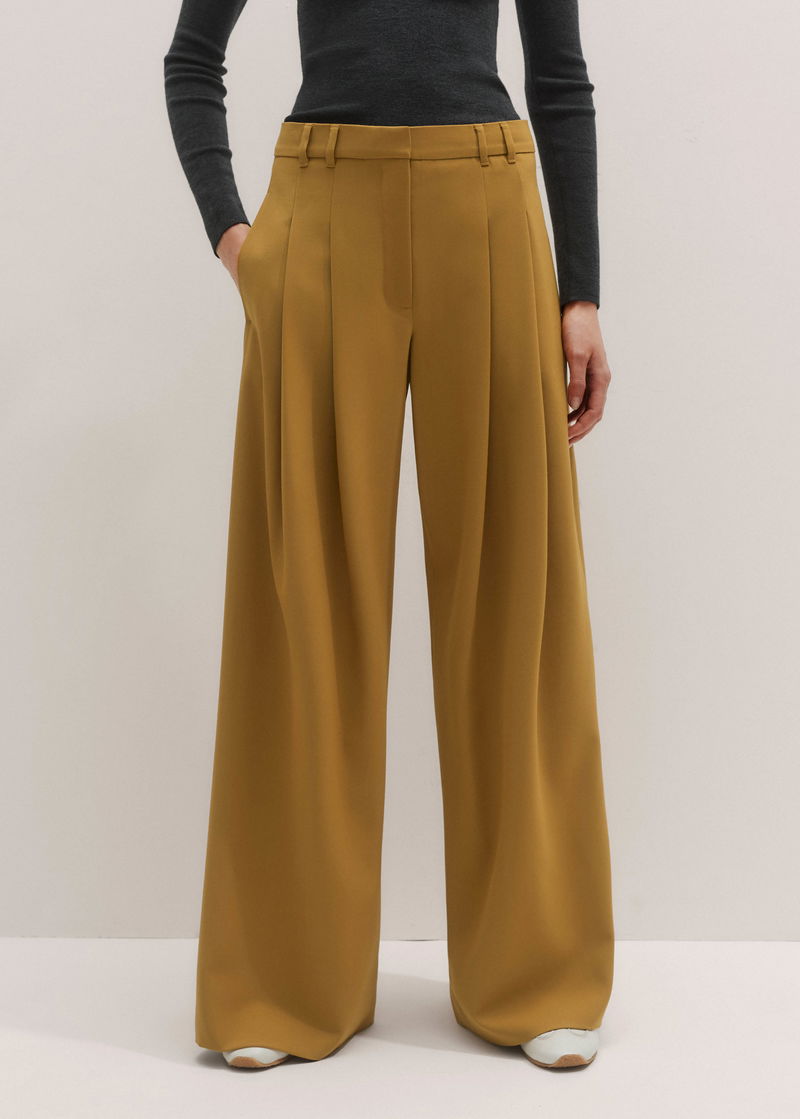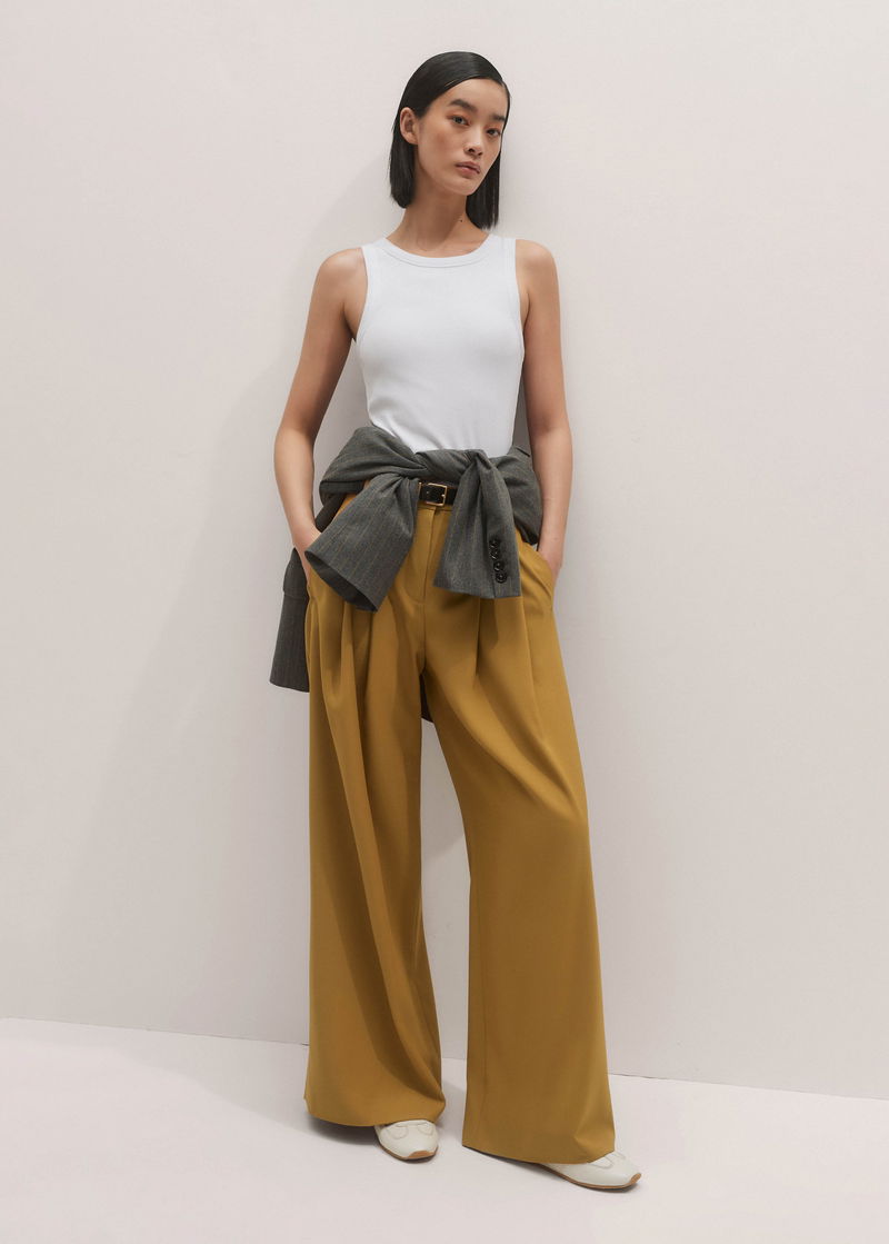ME+EM's Yellow Wide-Leg Pleated Trouser features pleats suspended from just below the waist to create a naturally fluid drape.