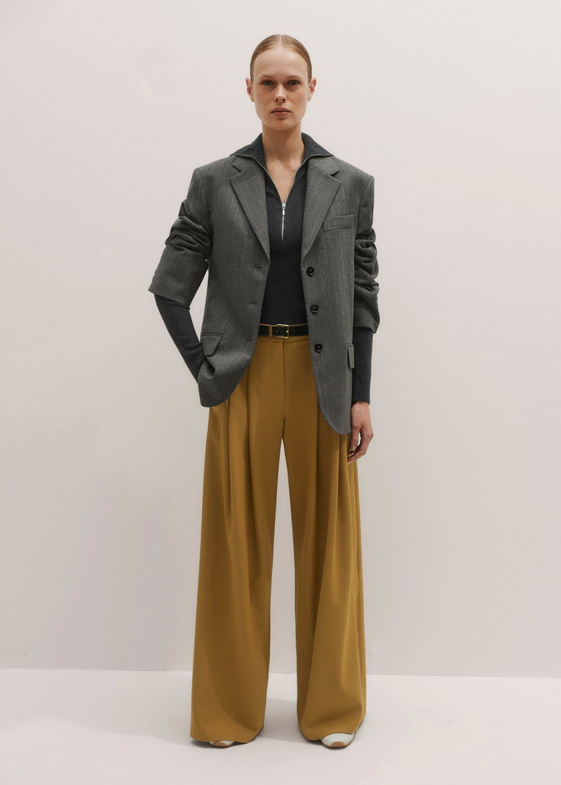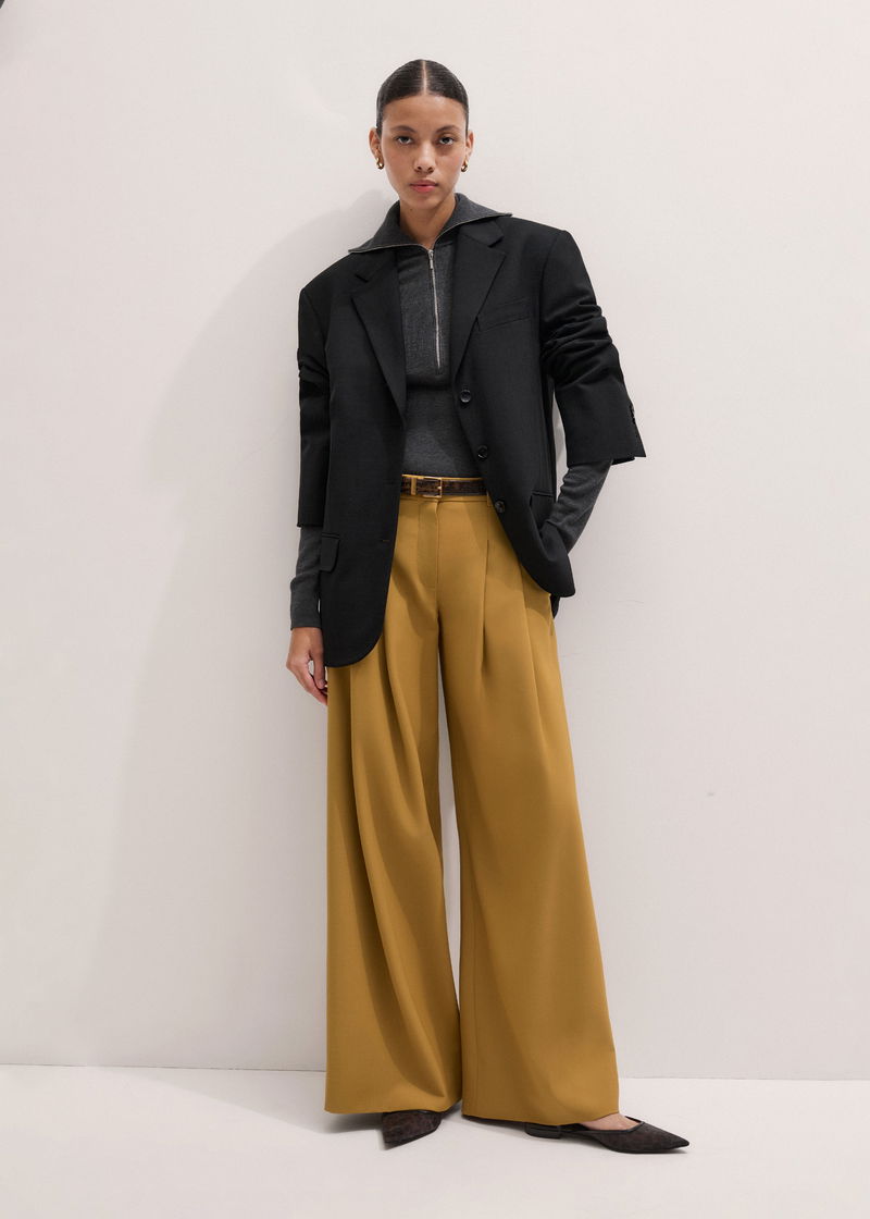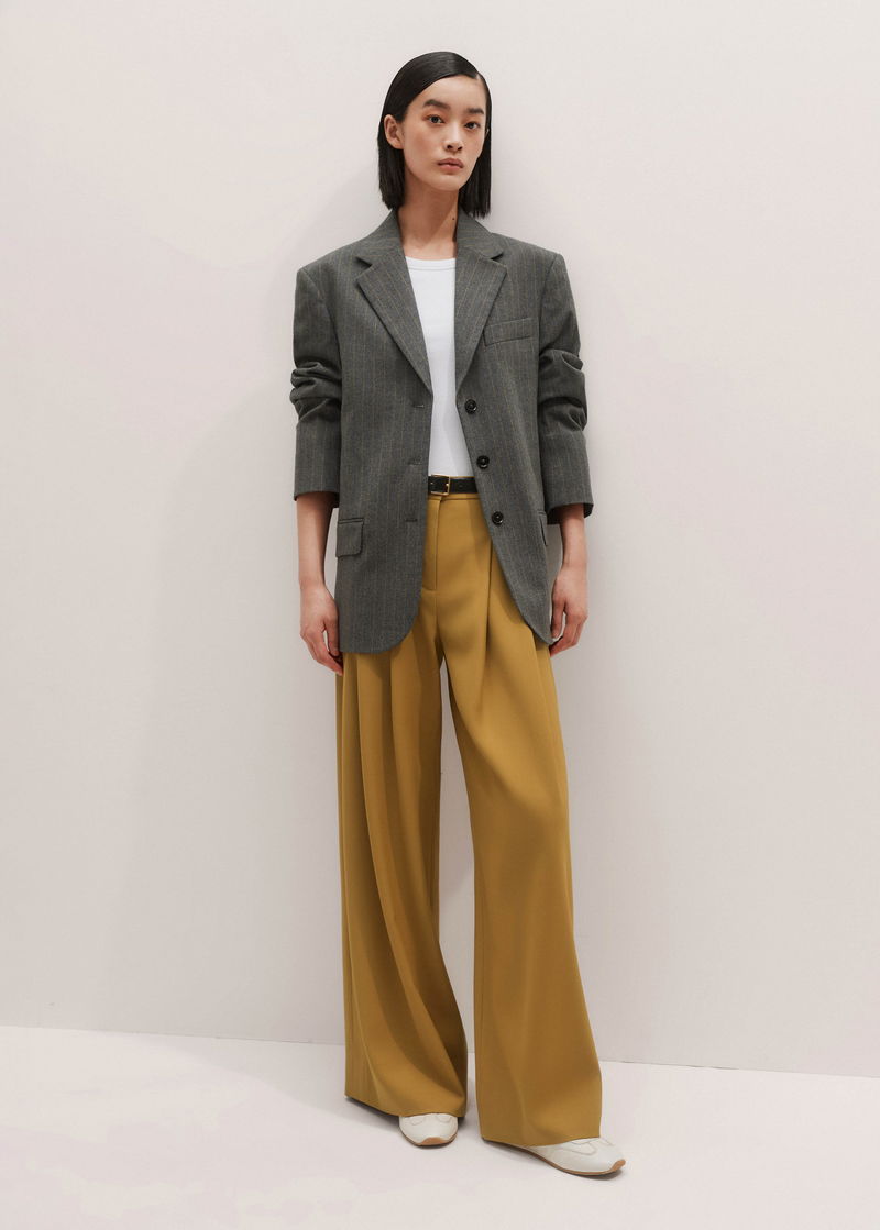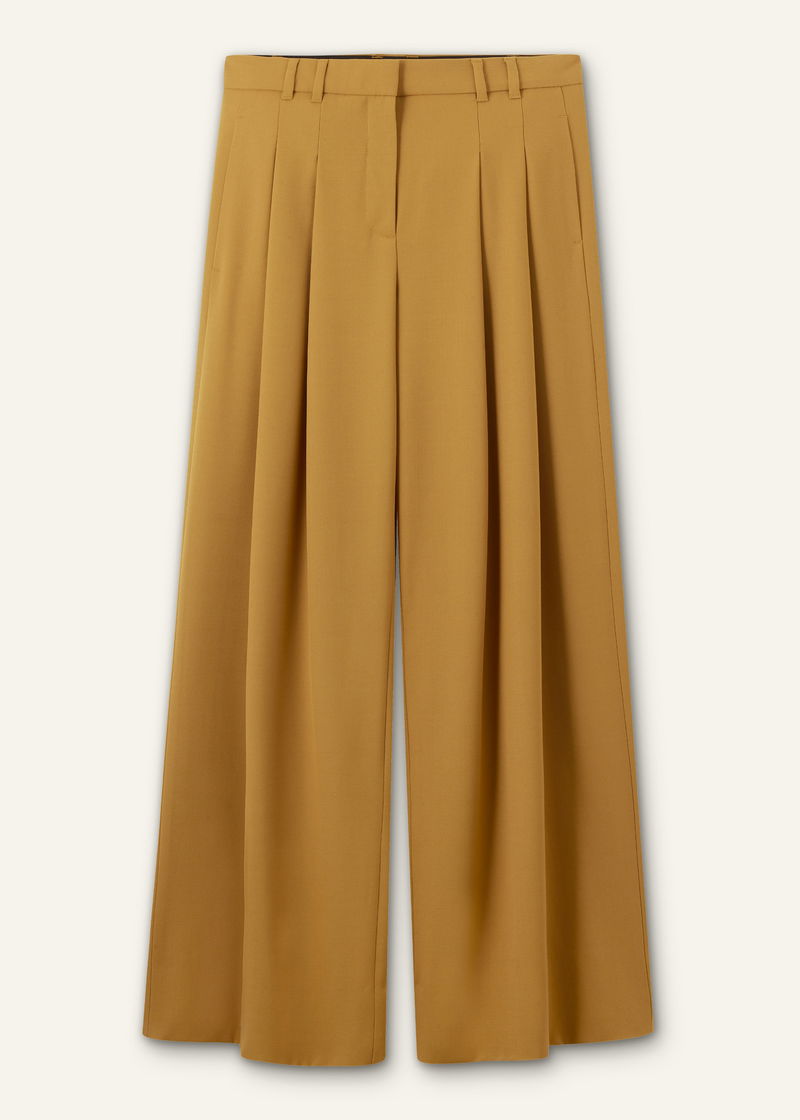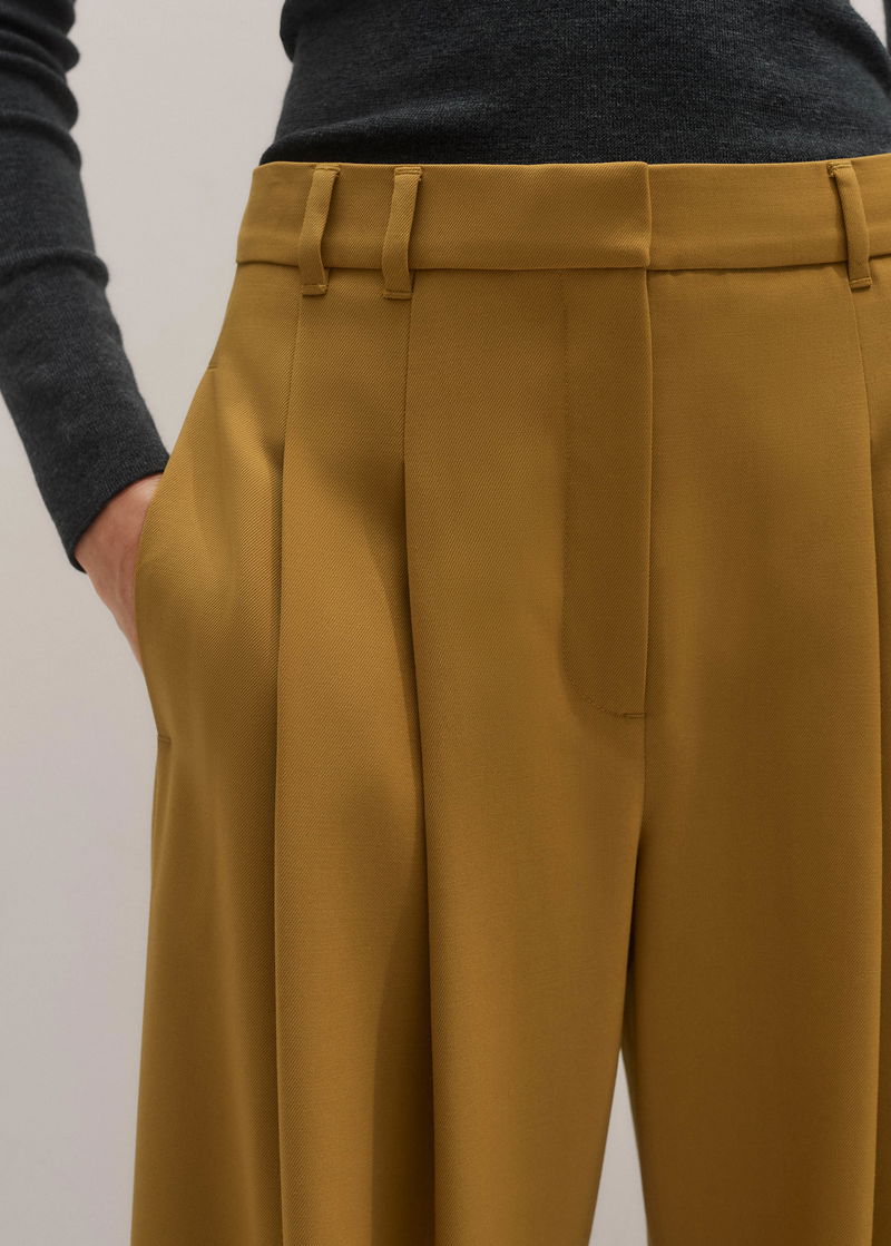 ME+EM's Yellow Wide-Leg Pleated Trouser features pleats suspended from just below the waist to create a naturally fluid drape.
