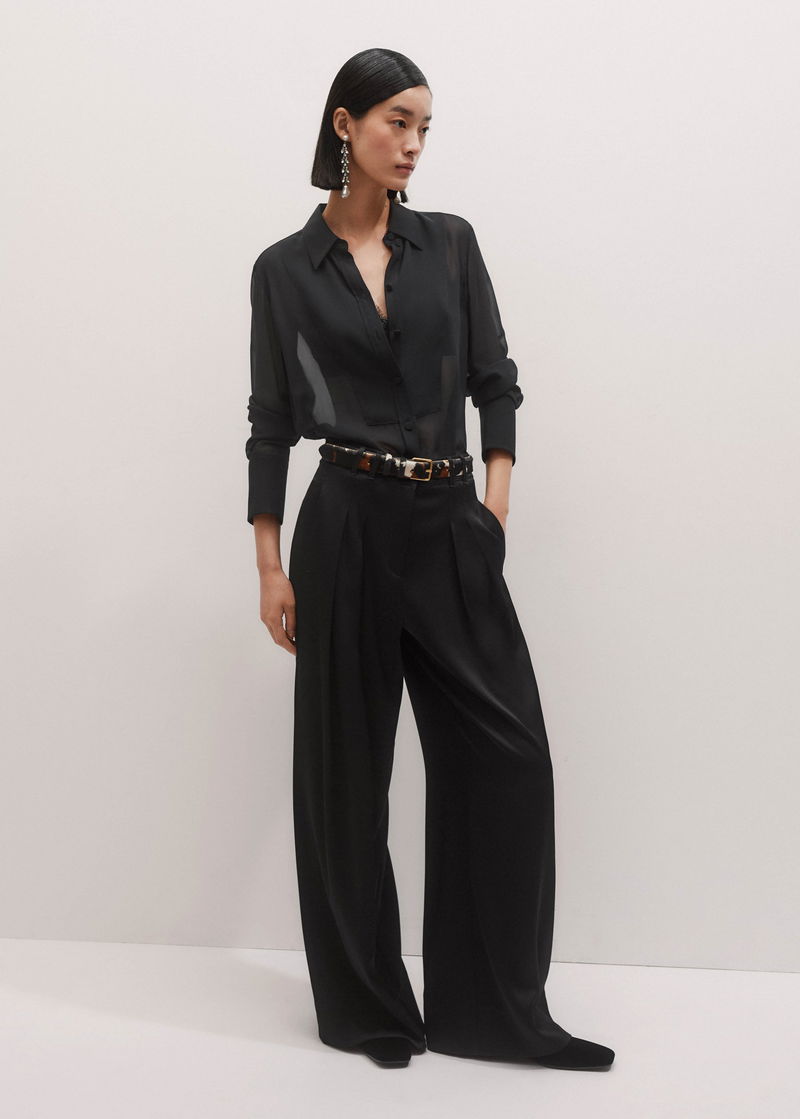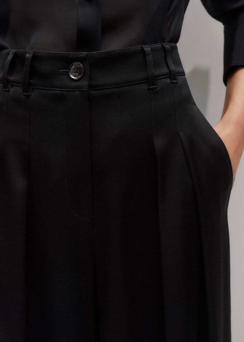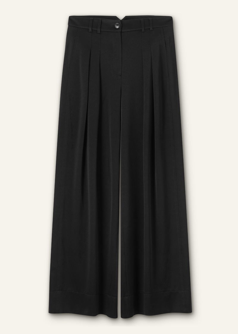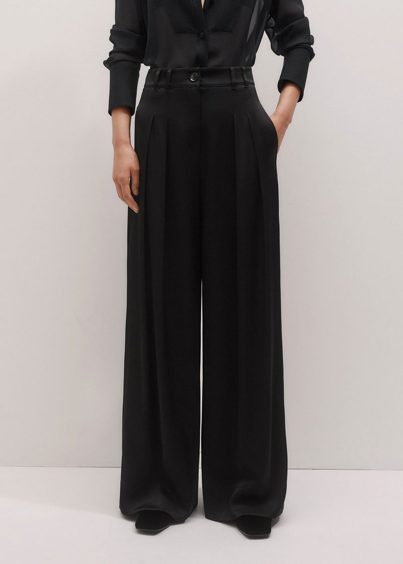 ME+EM's Black Wide-Leg Satin Double Pleat Trouser has a flattering natural drape and an extra silky finish.