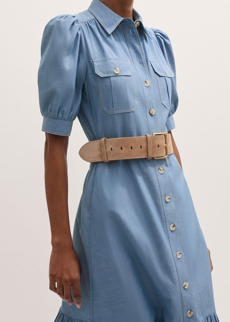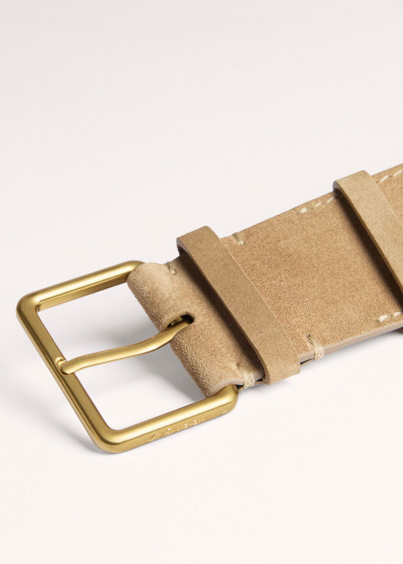 ME+EM's Beige Wide Waist Belt features seven holes and a square buckle to perfect the fit.