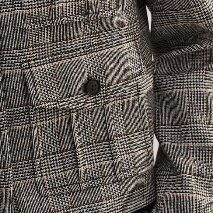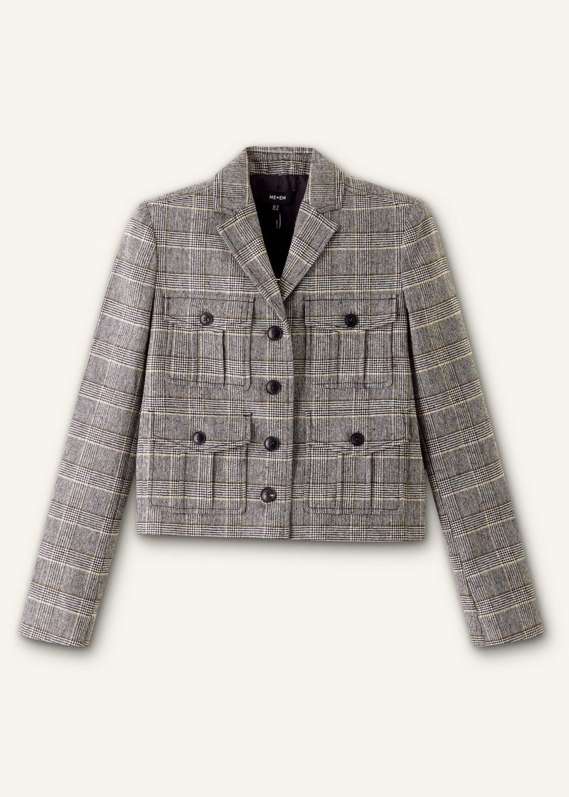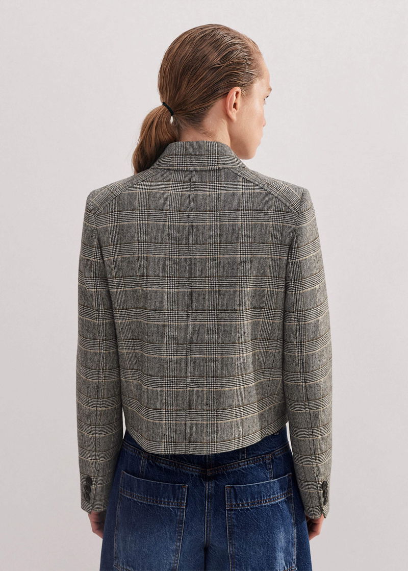 Wool-Blend Check Short Jacket Brown/Cream/Black