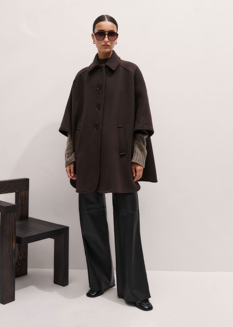 ME+EM's Brown Curved Seam Cape Coat is cleverly crafted to achieve a flattering shape with just the right amount of coverage.