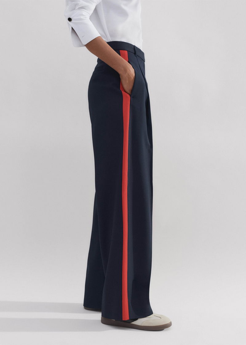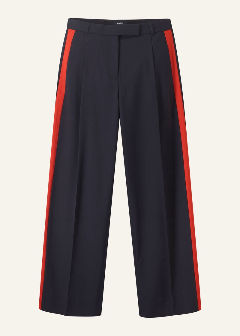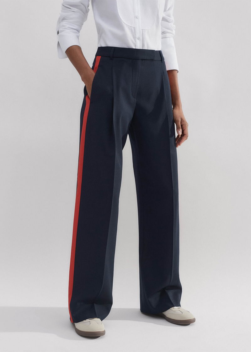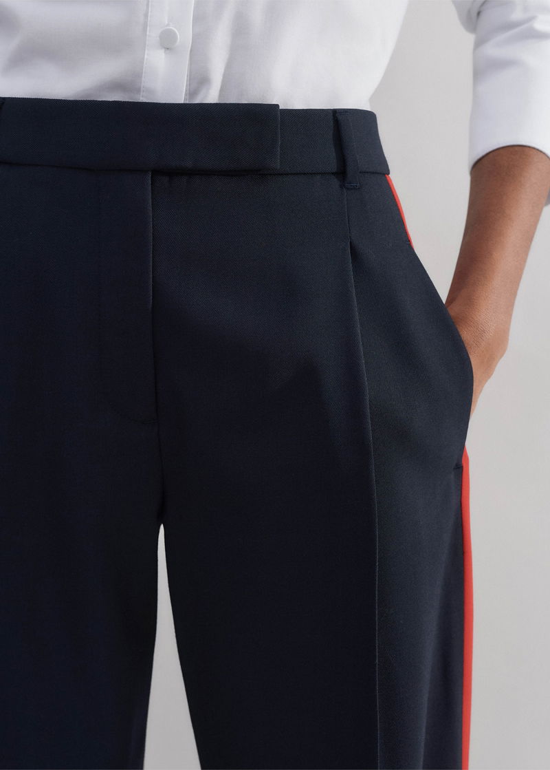 ME+EM's Navy Wool-Blend Side Stripe Tailored Trouser is elevated with a contrasting orange side stripe for a contemporary finish.
