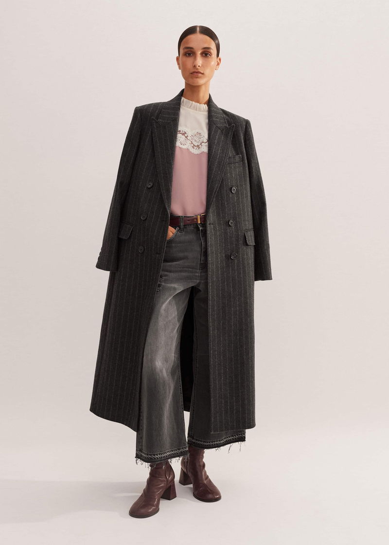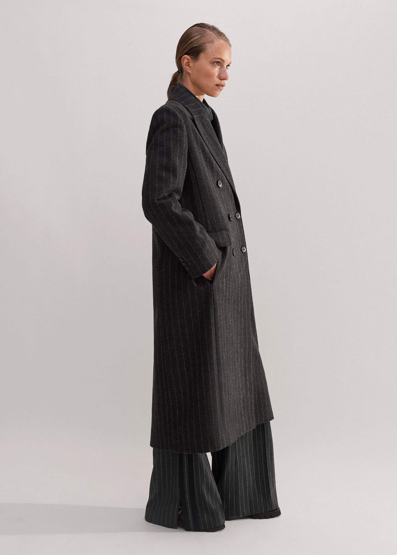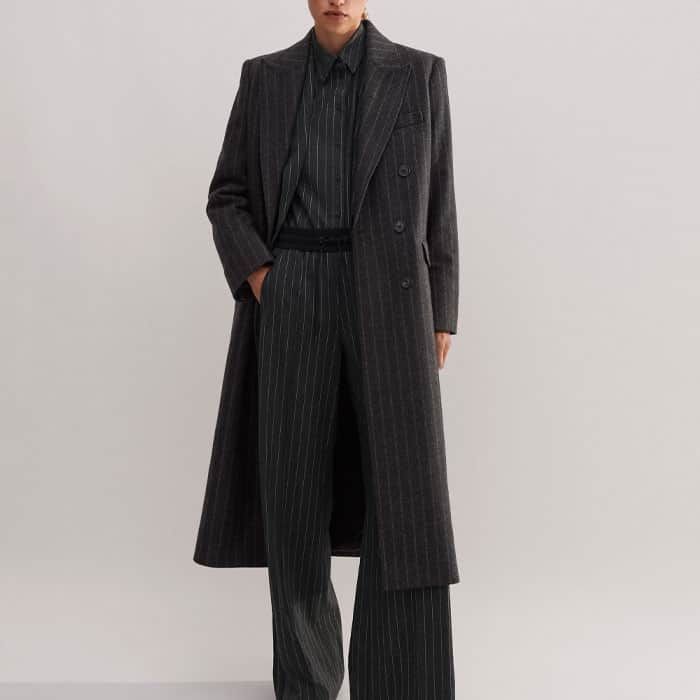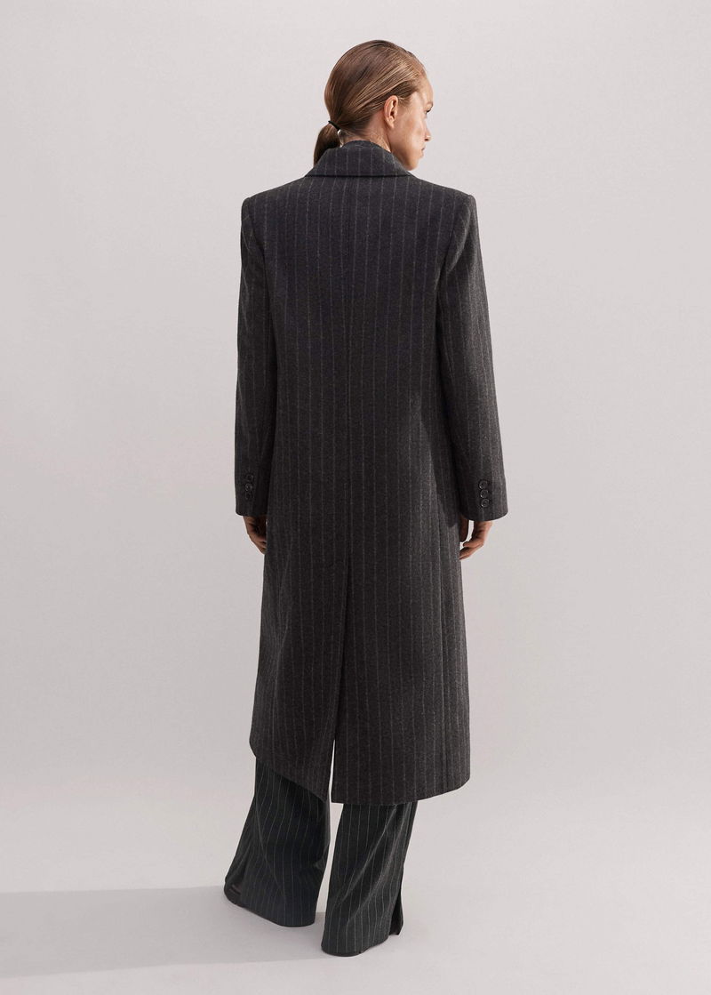 ME+EM's Grey Wool-Blend Tomboy Pinstripe Coat is perfect for layering over printed dresses for a masculine-feminine finish.