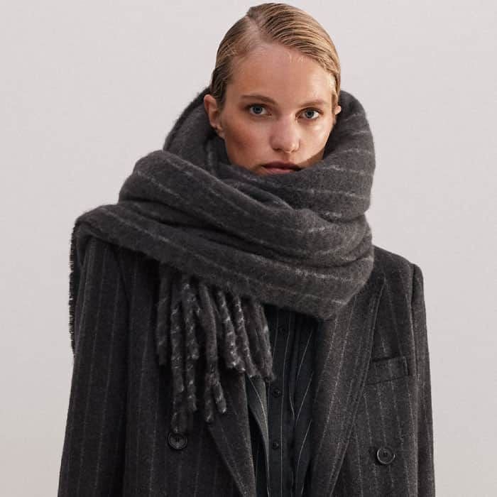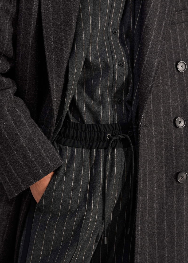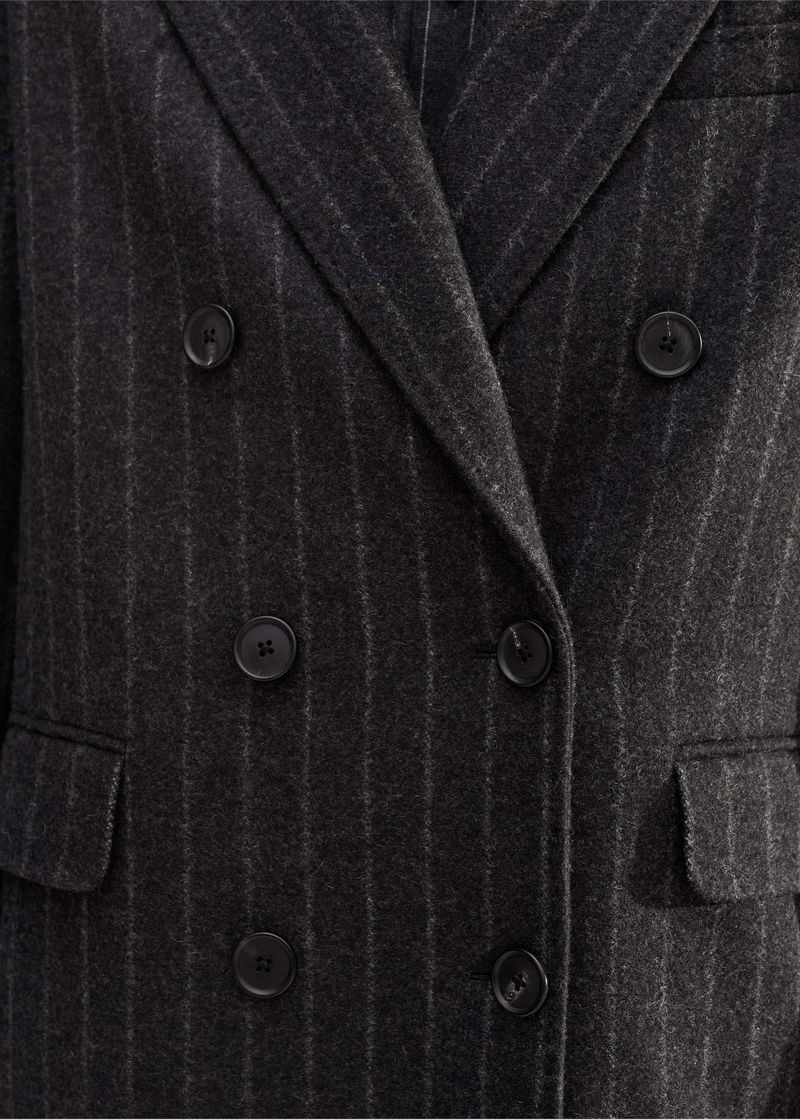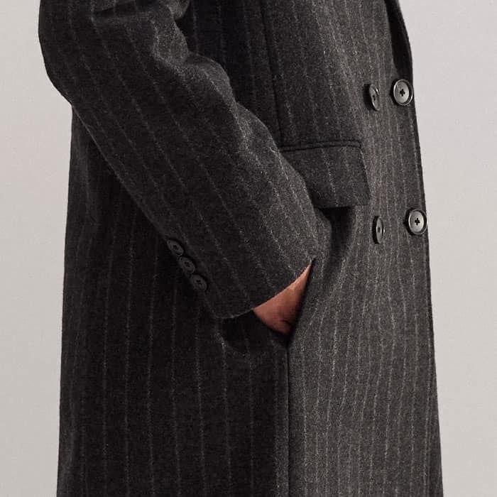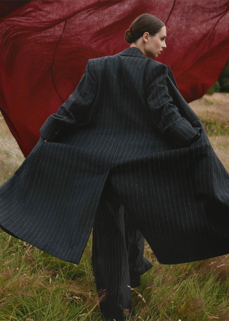 ME+EM's Grey Wool-Blend Tomboy Pinstripe Coat is perfect for layering over printed dresses for a masculine-feminine finish.